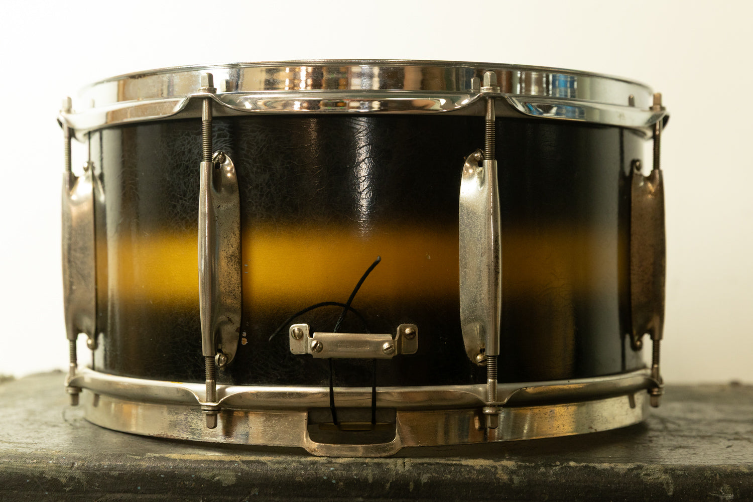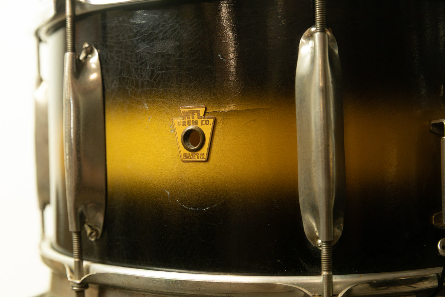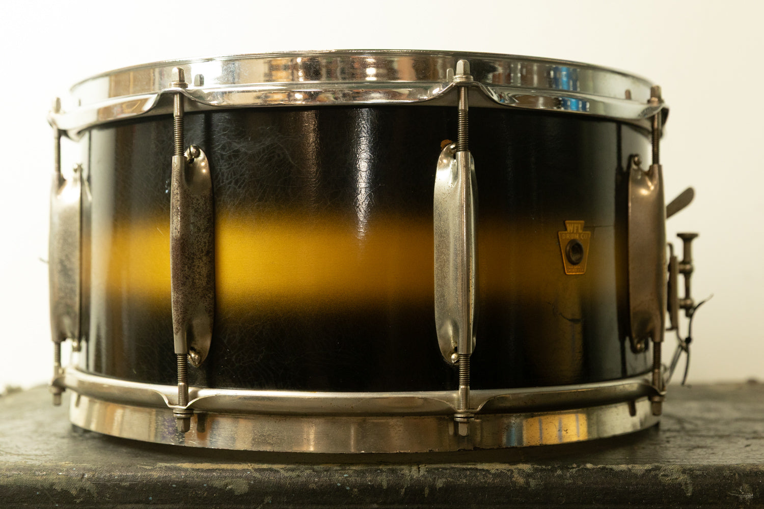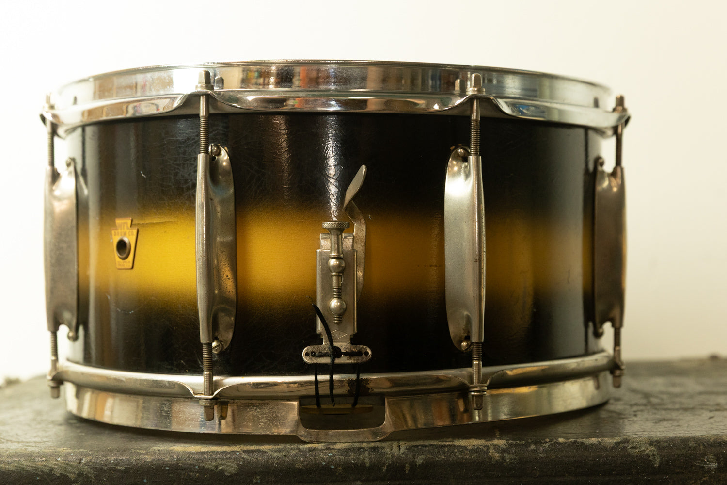 1930s WFL 7x14 All American Swing Black and Gold Duco Snare Drum