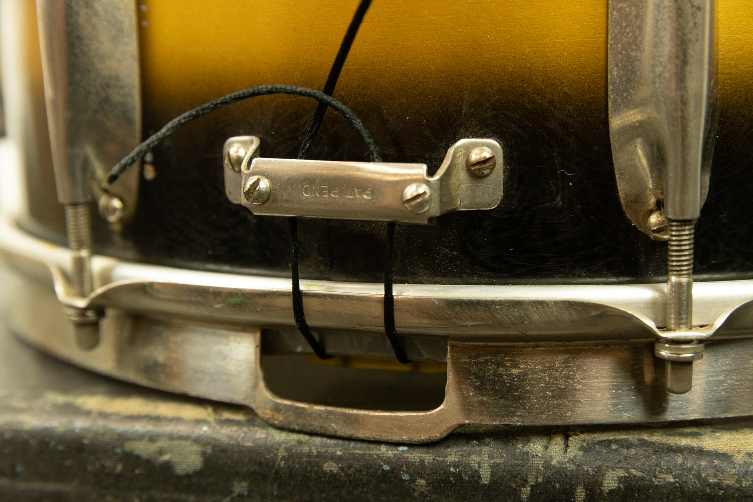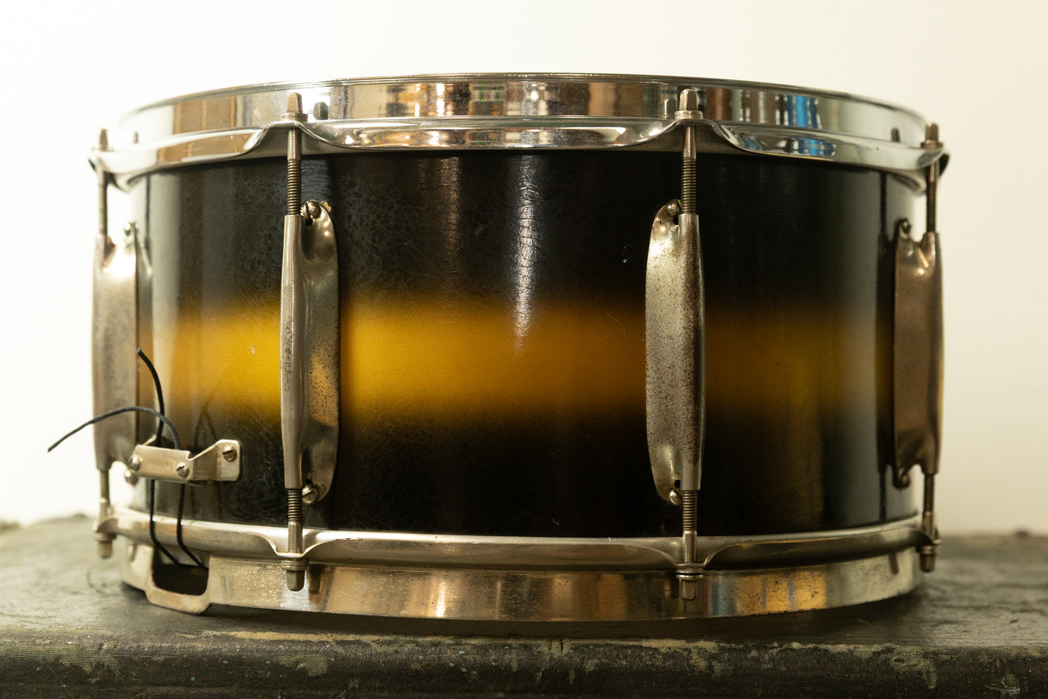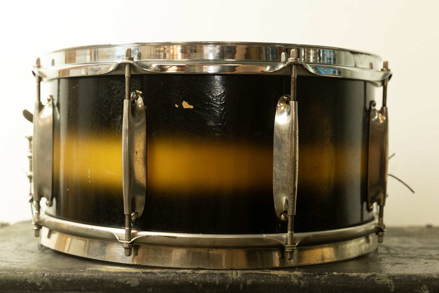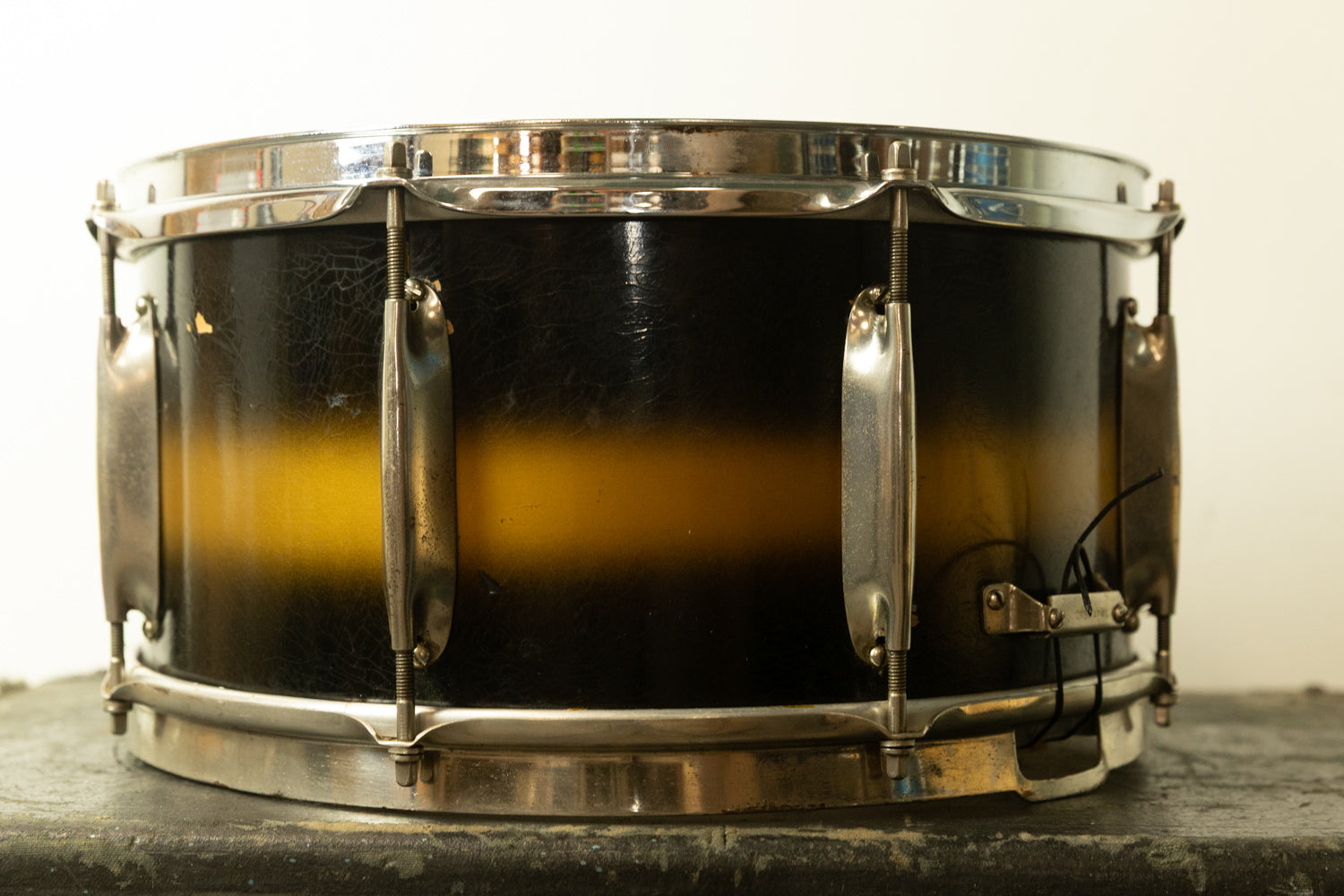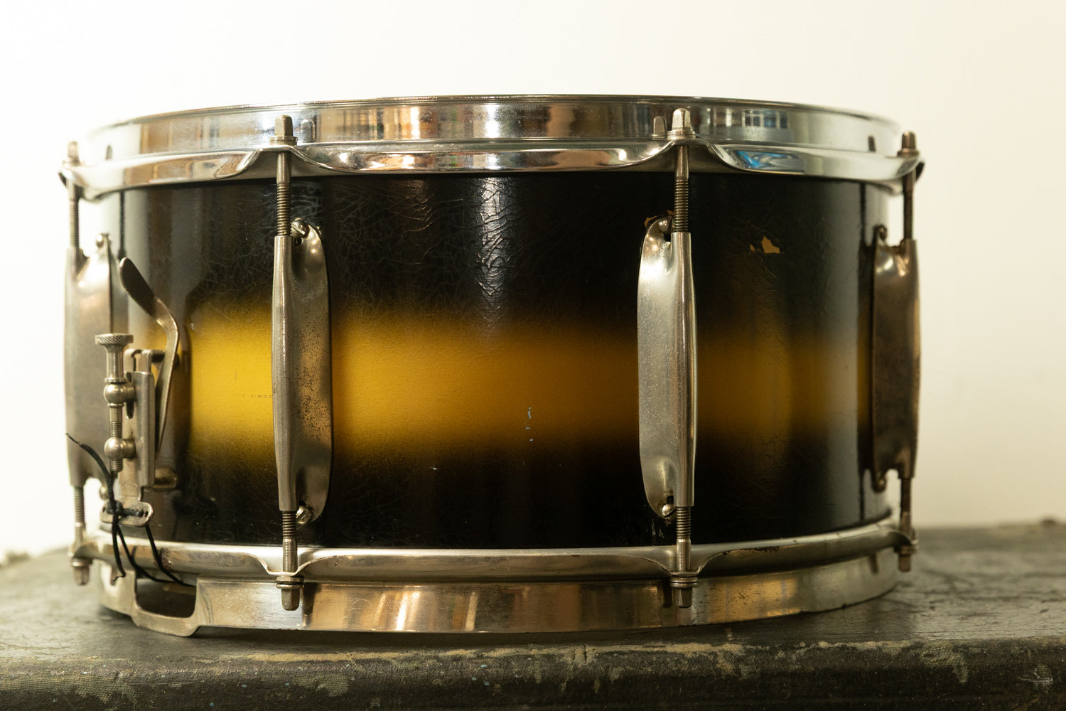1930s WFL 7x14 All American Swing Black and Gold Duco Snare Drum