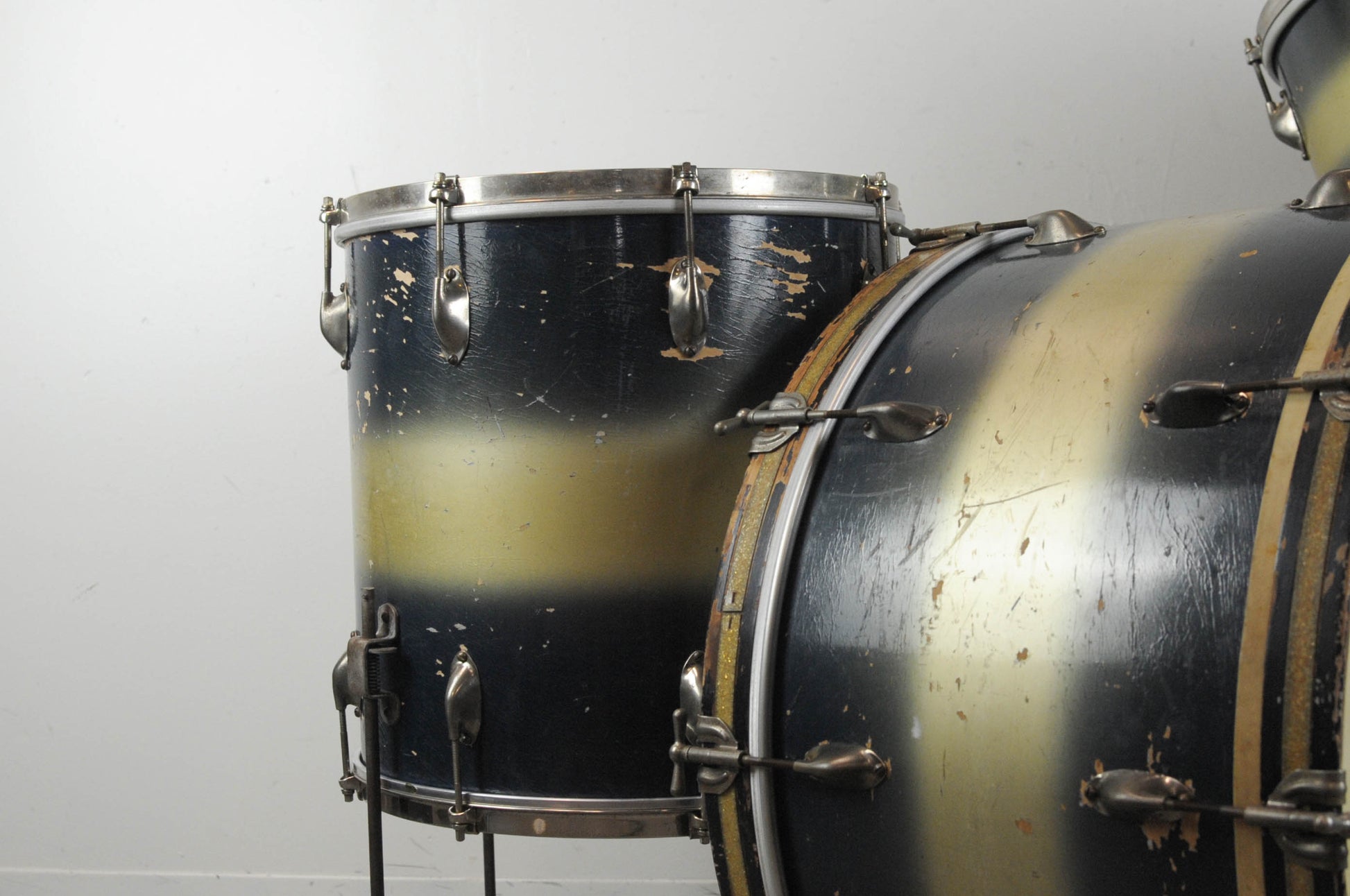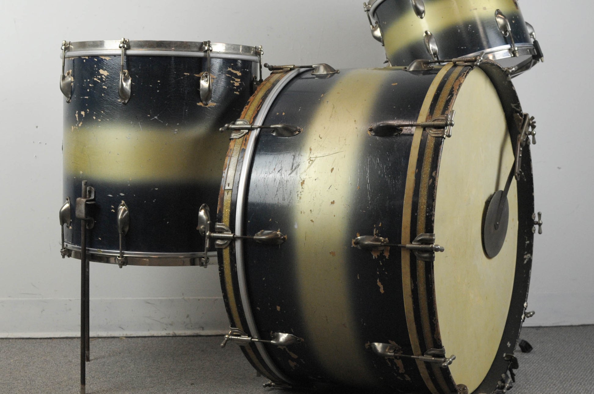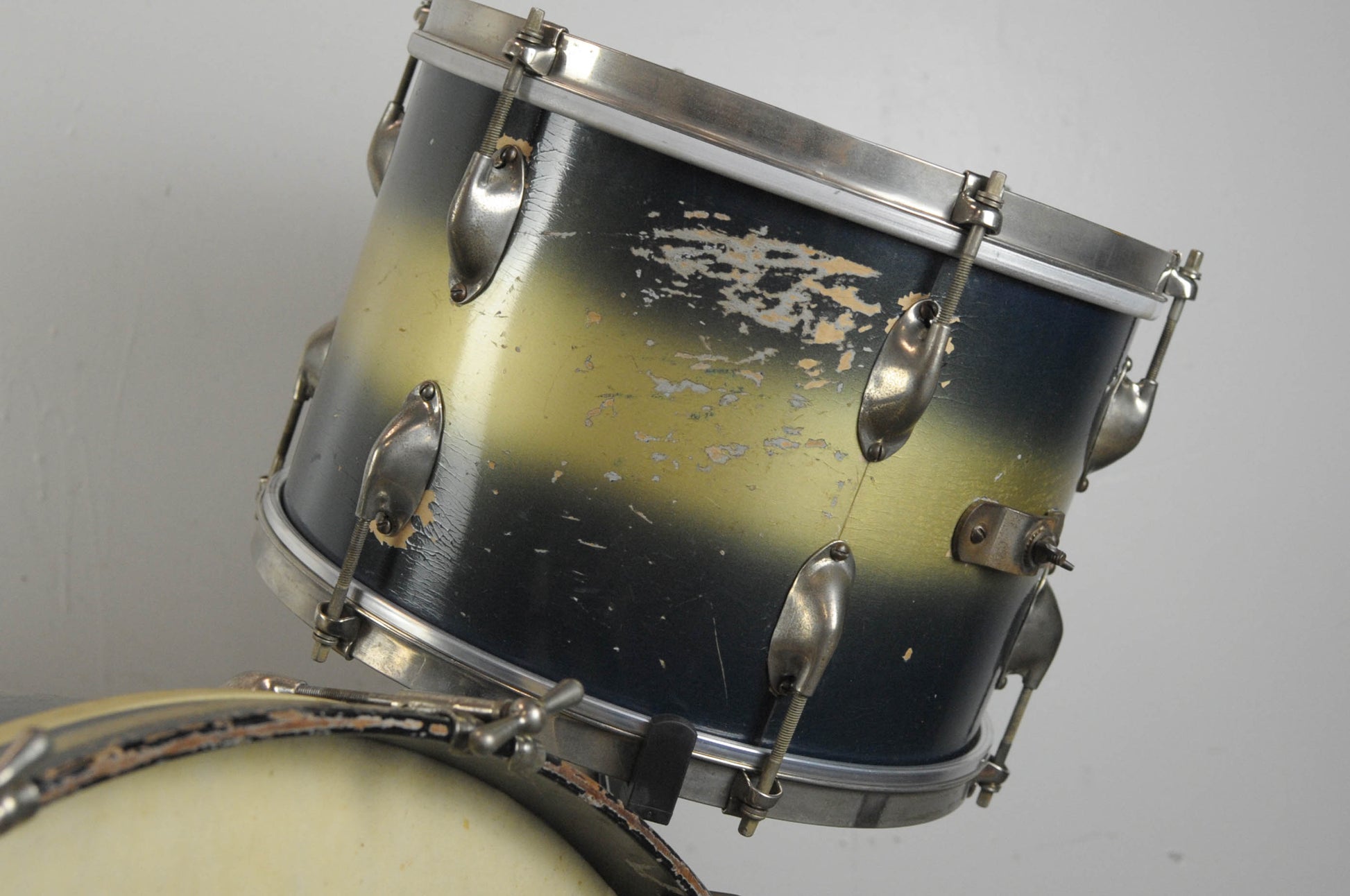 1930s WFL Blue & Silver Duco Drum Set 14x26 9x13 and 16x16