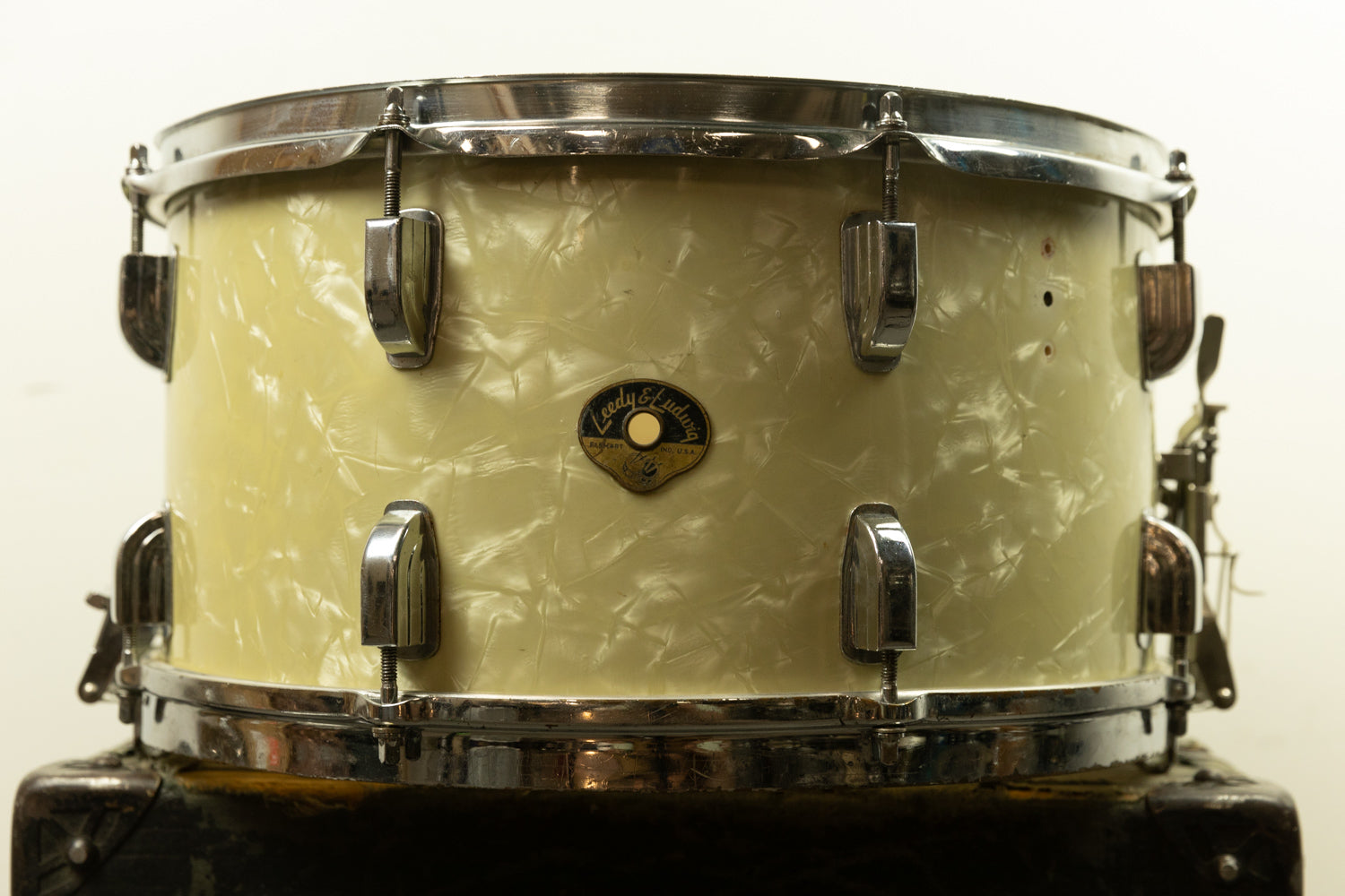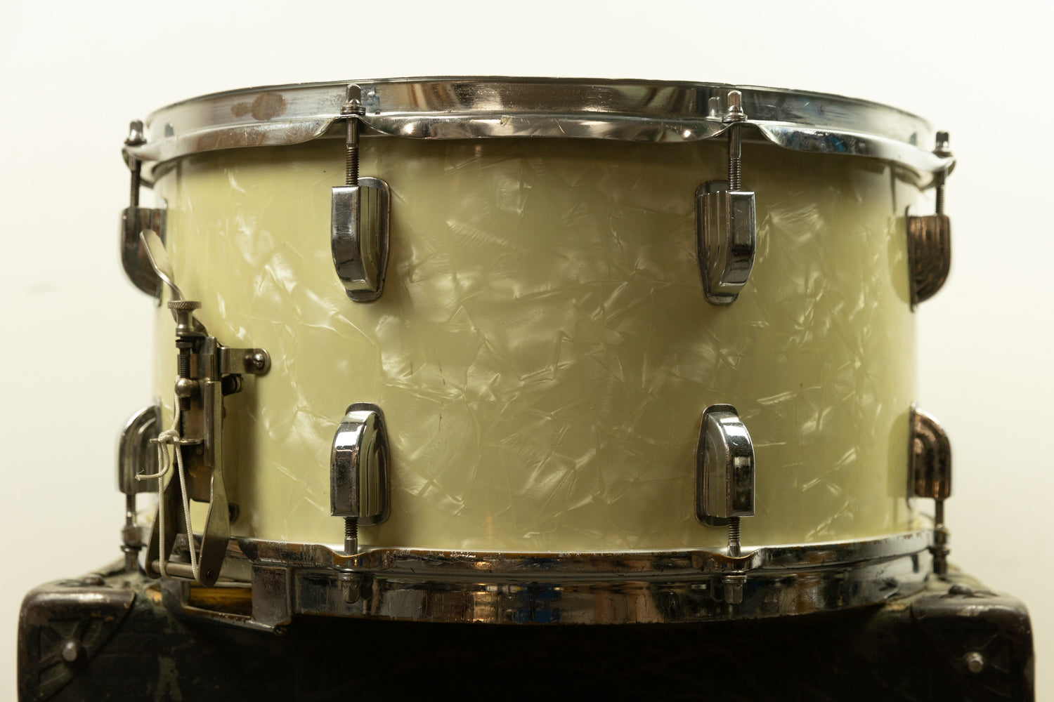 1950s Leedy 8x15 "Concert King" White Marine Pearl Snare Drum