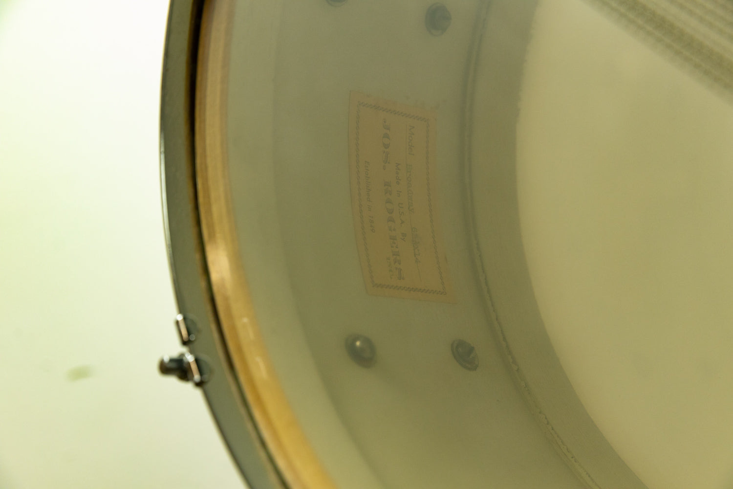 1950s Rogers 6.5x14 White Lacquer Broadway Snare Drum