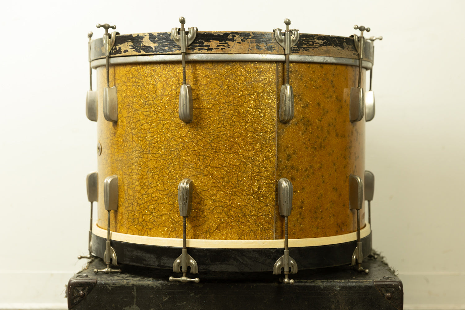 1950s Slingerland 14x22 Gold Sparkle Pearl Radio King Bass Drum