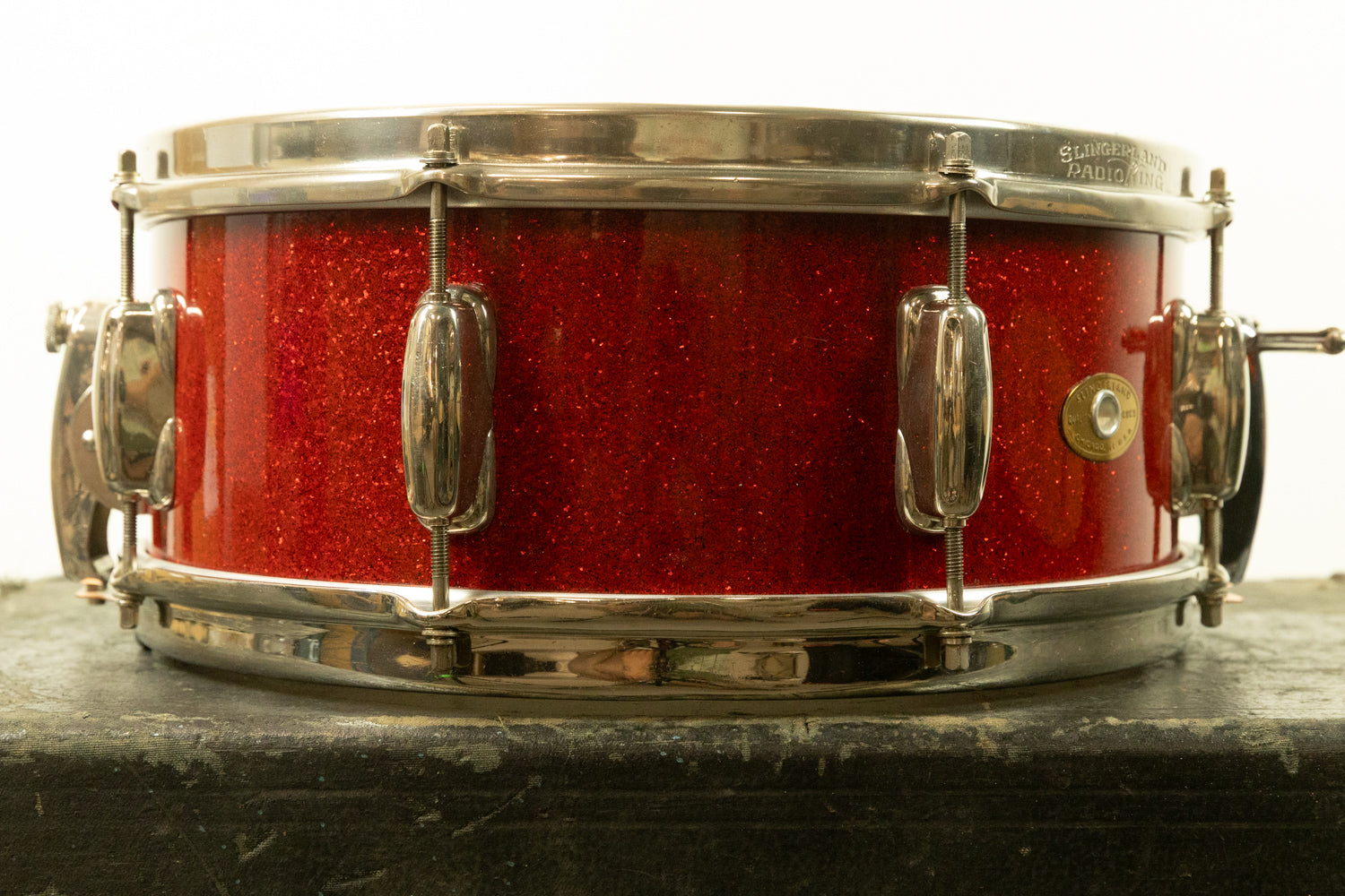 1950s Slingerland 5.5x14 Sparkling Red Pearl Super Gene Krupa Radio King Snare Drum