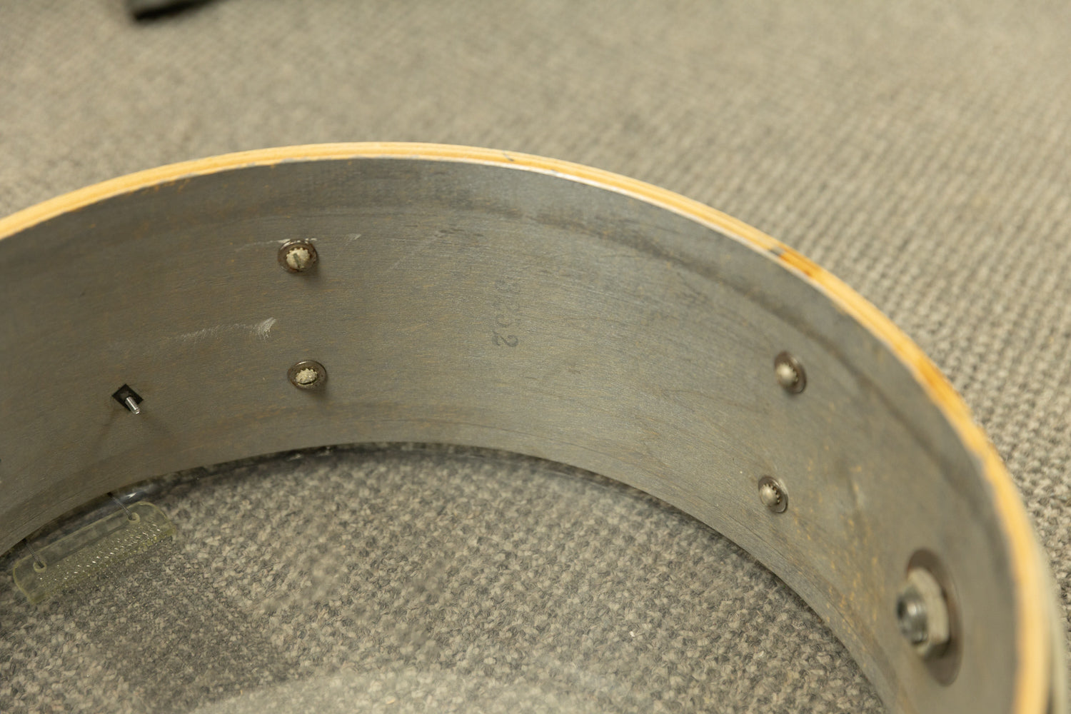 - Single flange hoops, top and bottom. Top hoop isn't in perfect round and has some impressions from the claws, but takes a head and works