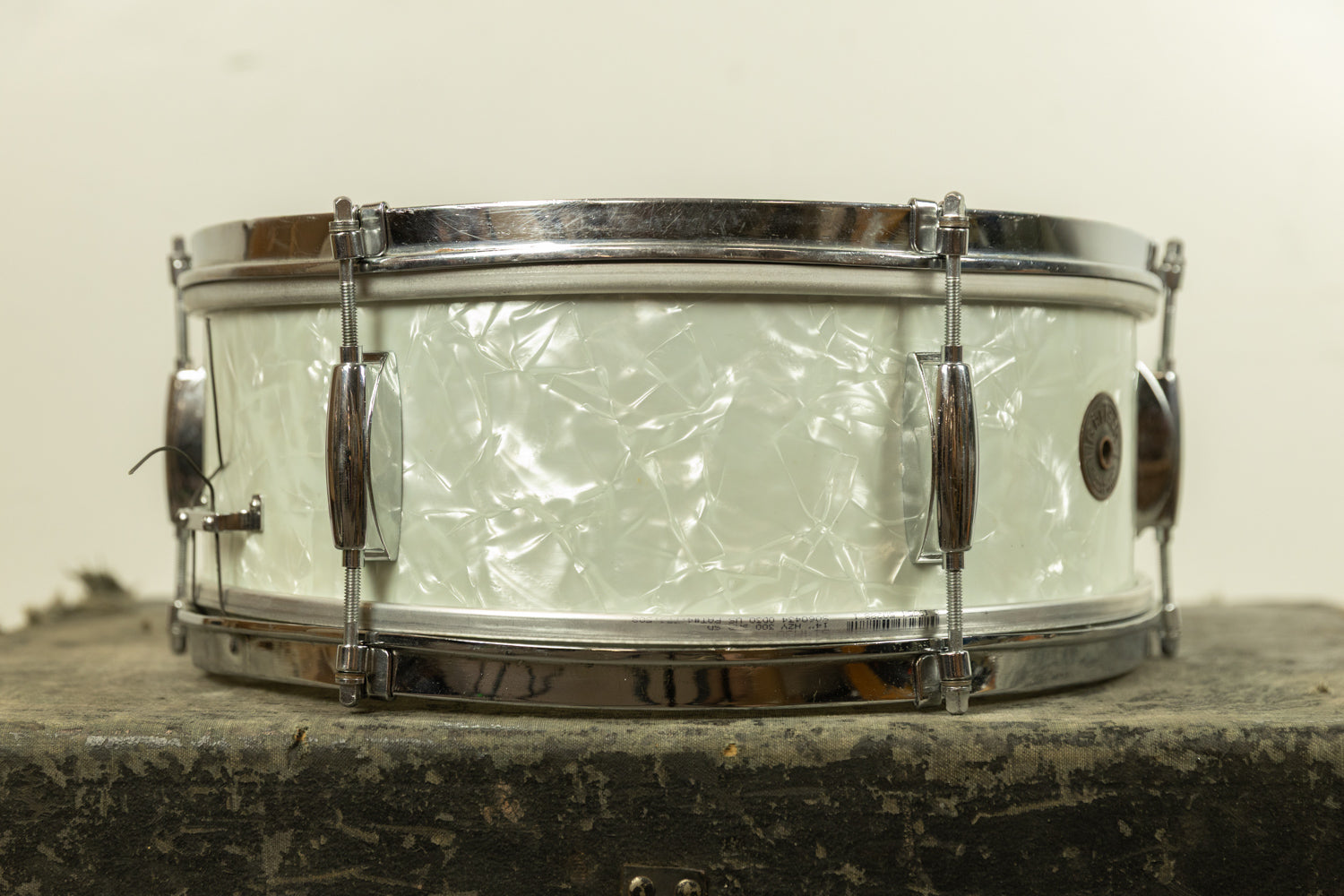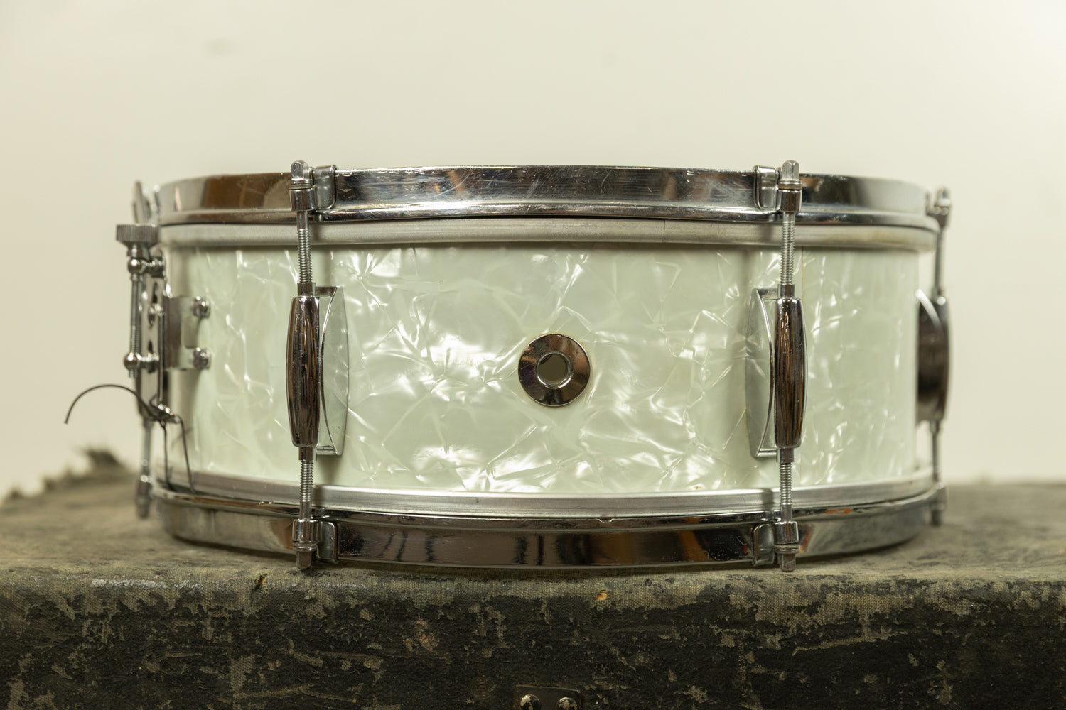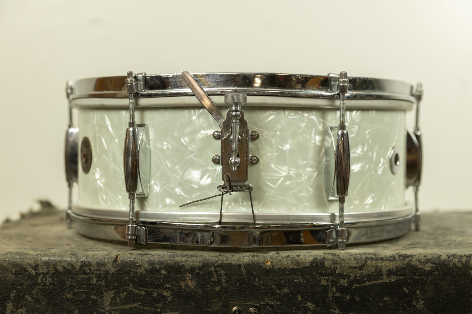 1960s Gretsch 5.5x14 White Marine Pearl Dixieland Snare Drum