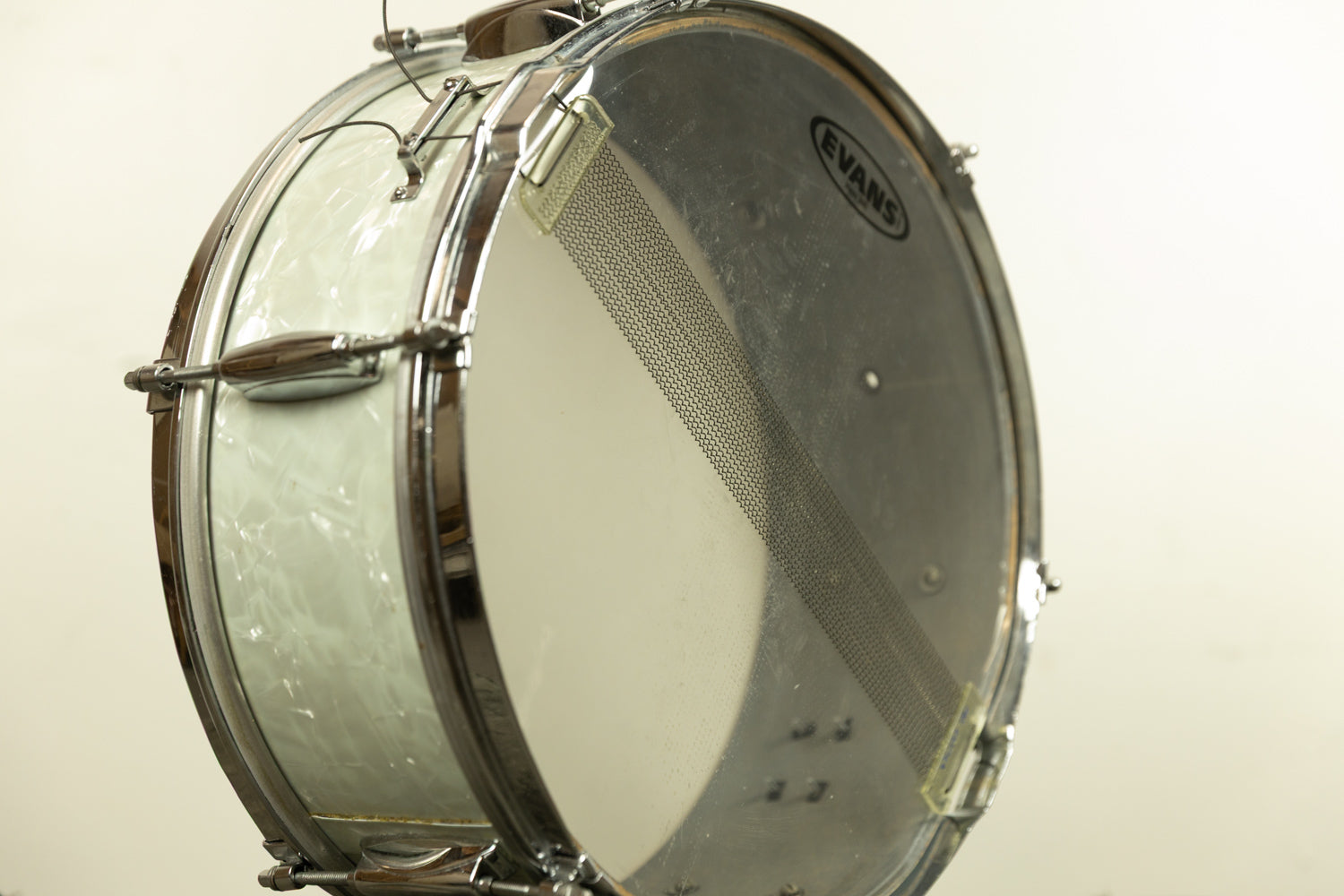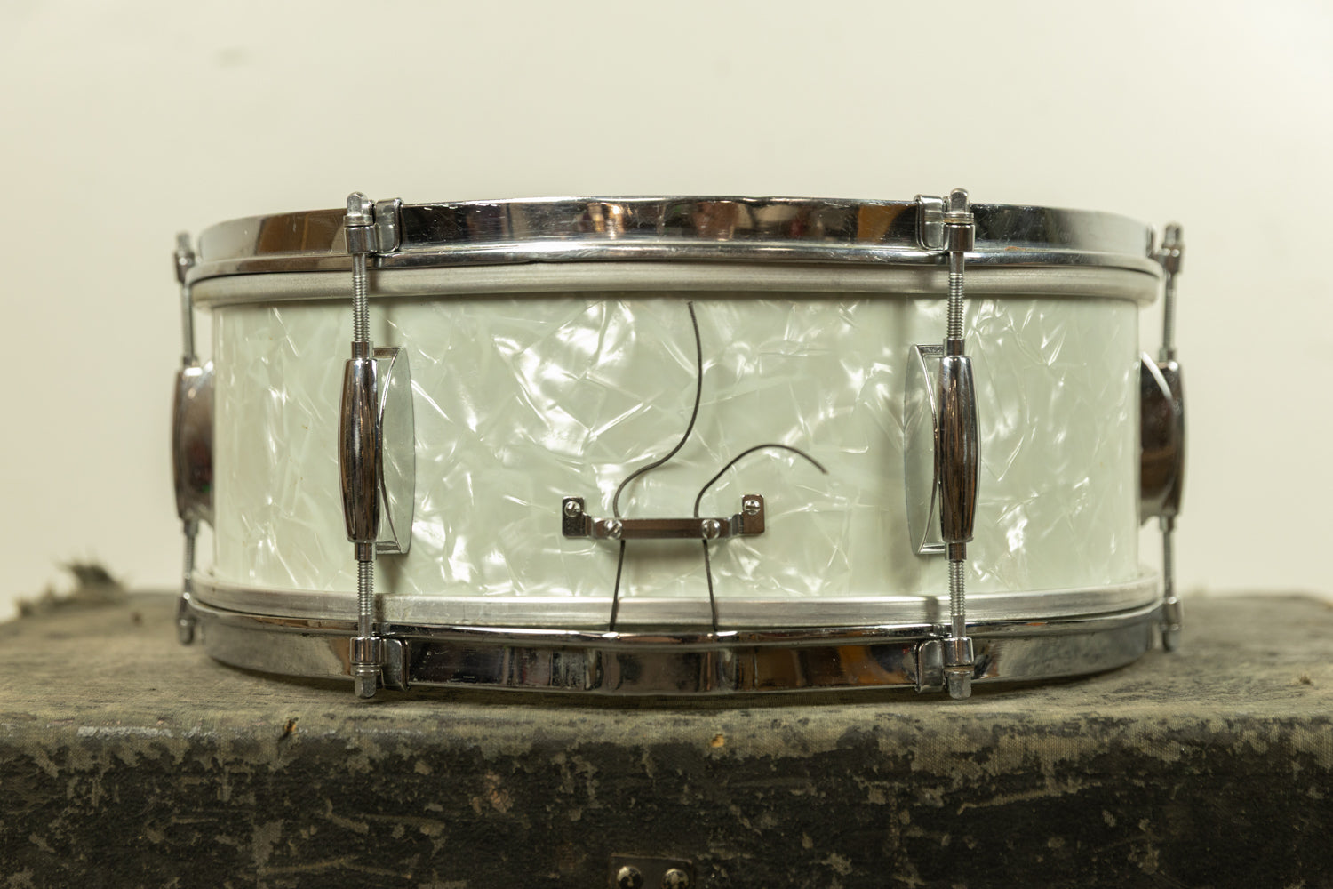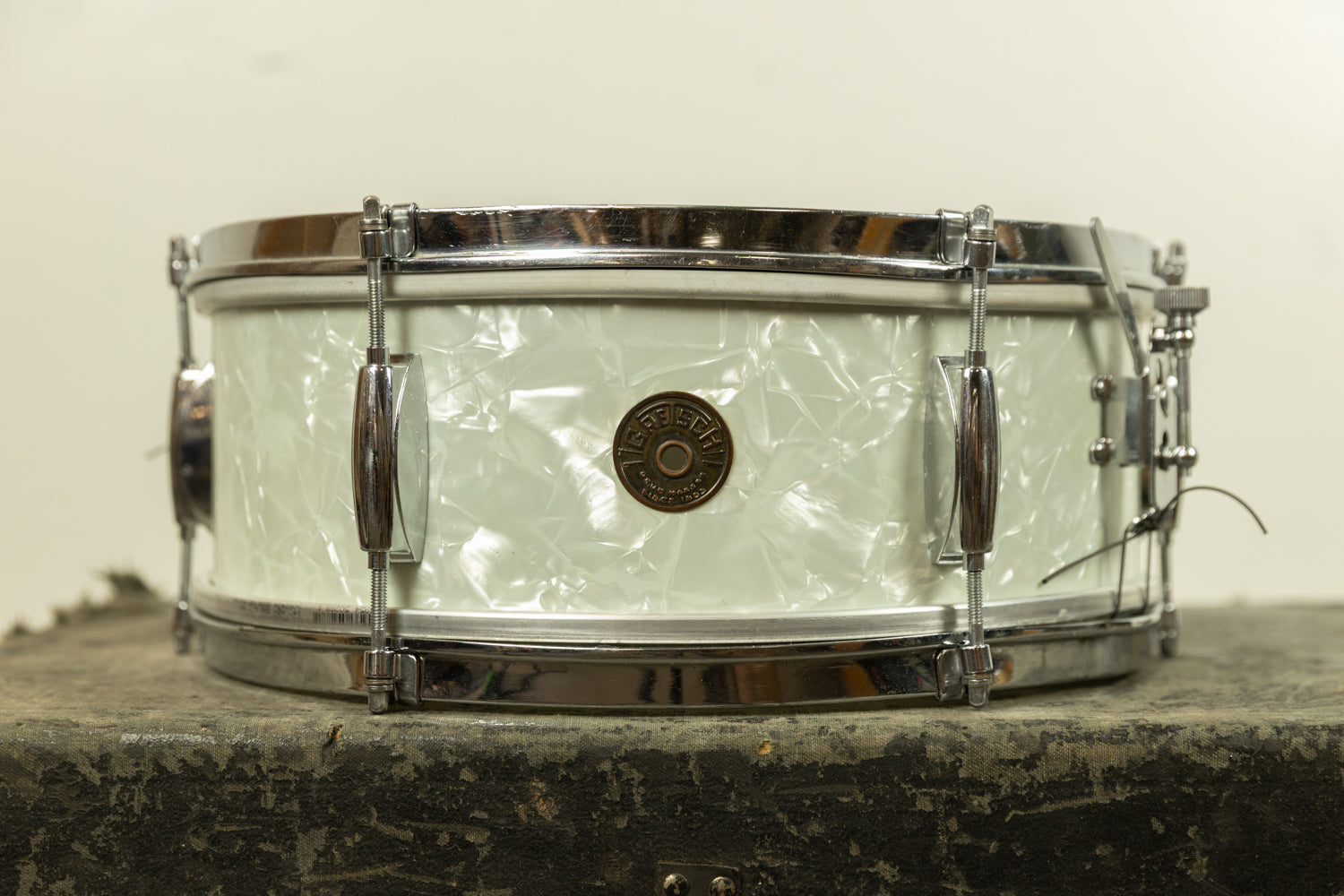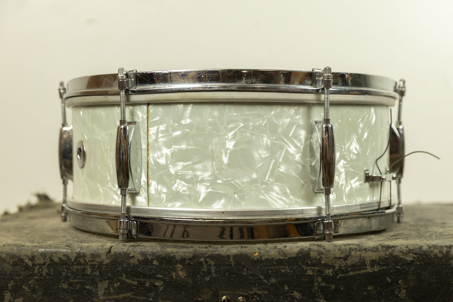1960s Gretsch 5.5x14 White Marine Pearl Dixieland Snare Drum