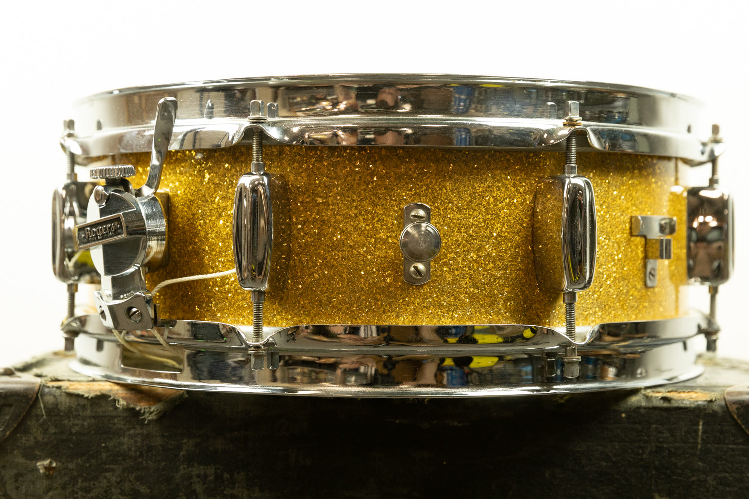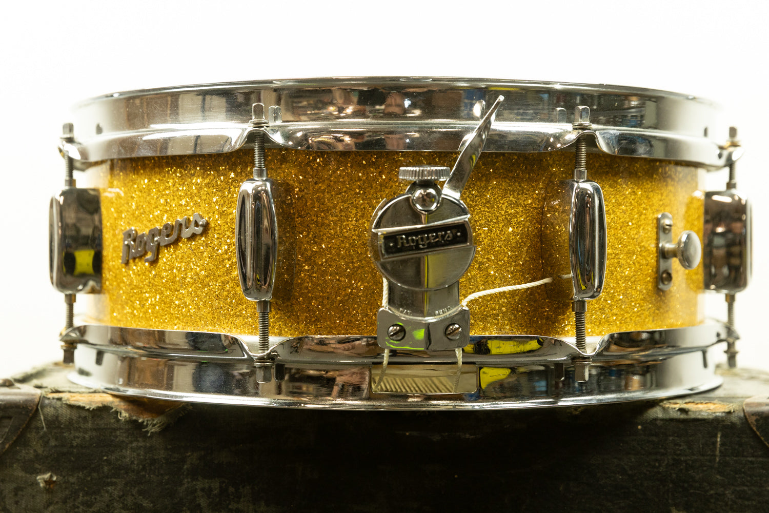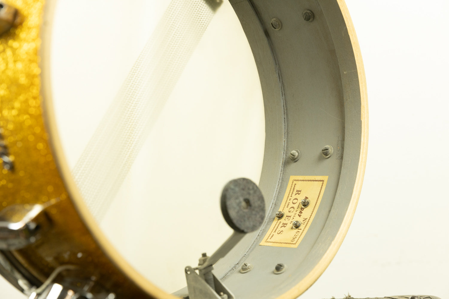 1960s Rogers 5x14 Sparkling Gold Pearl Holiday Snare Drum