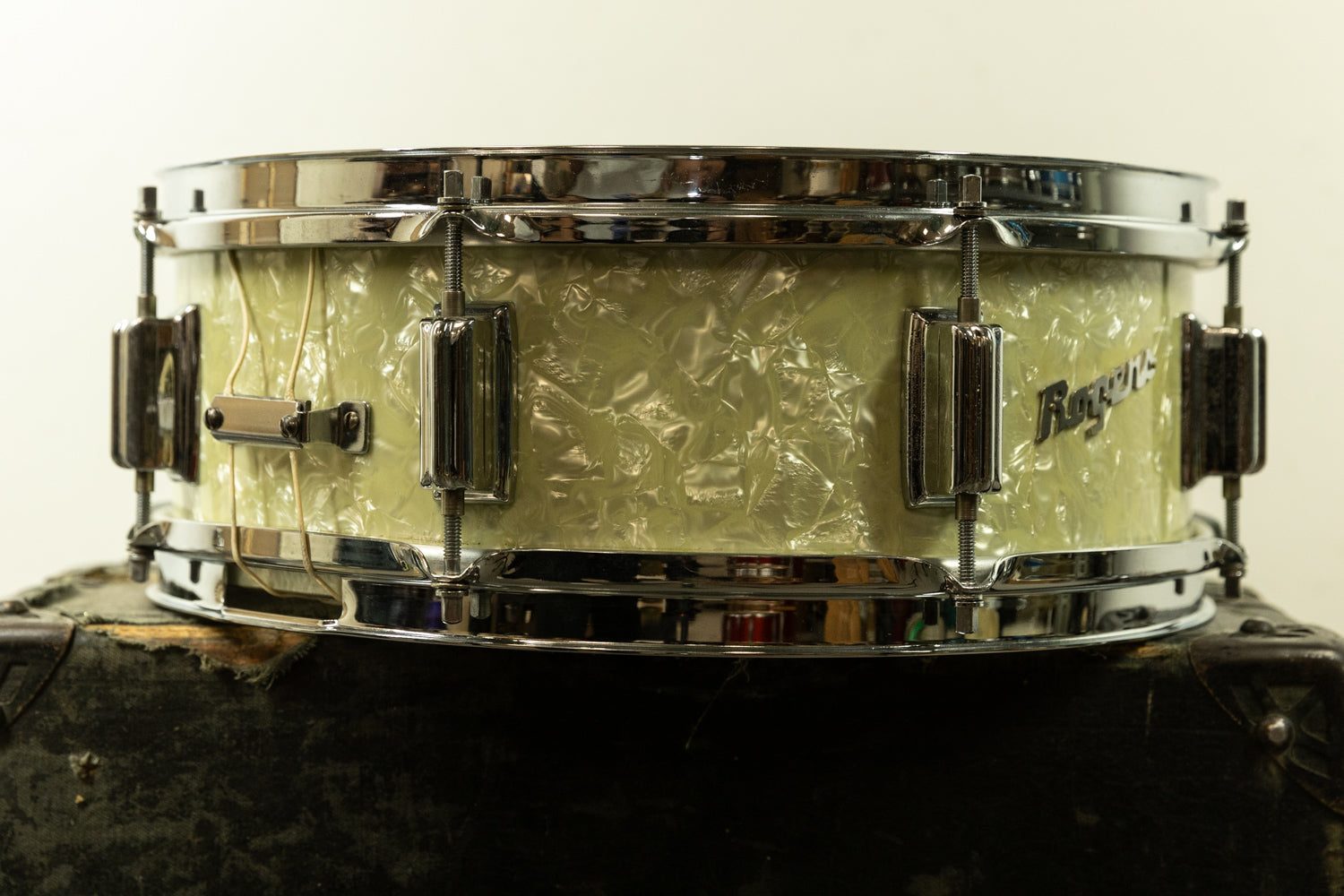 1960s Rogers 5x14 White Marine Pearl Tower Snare Drum