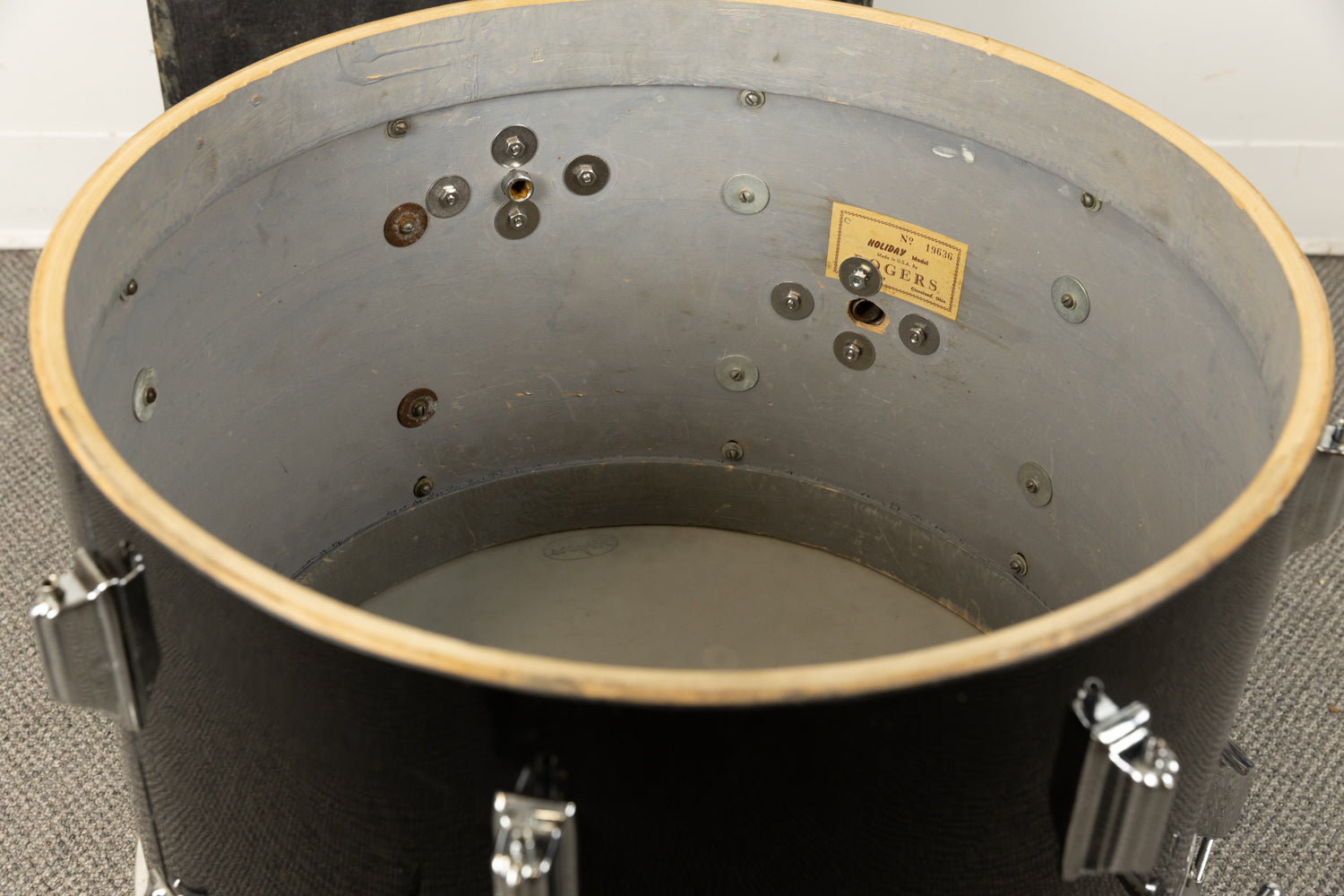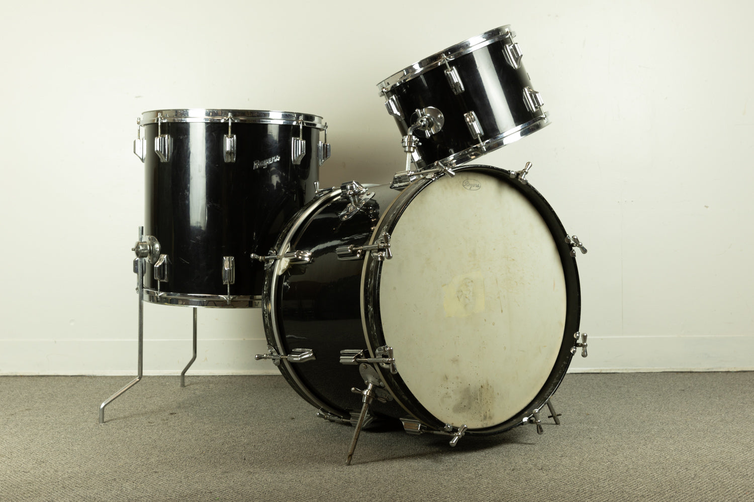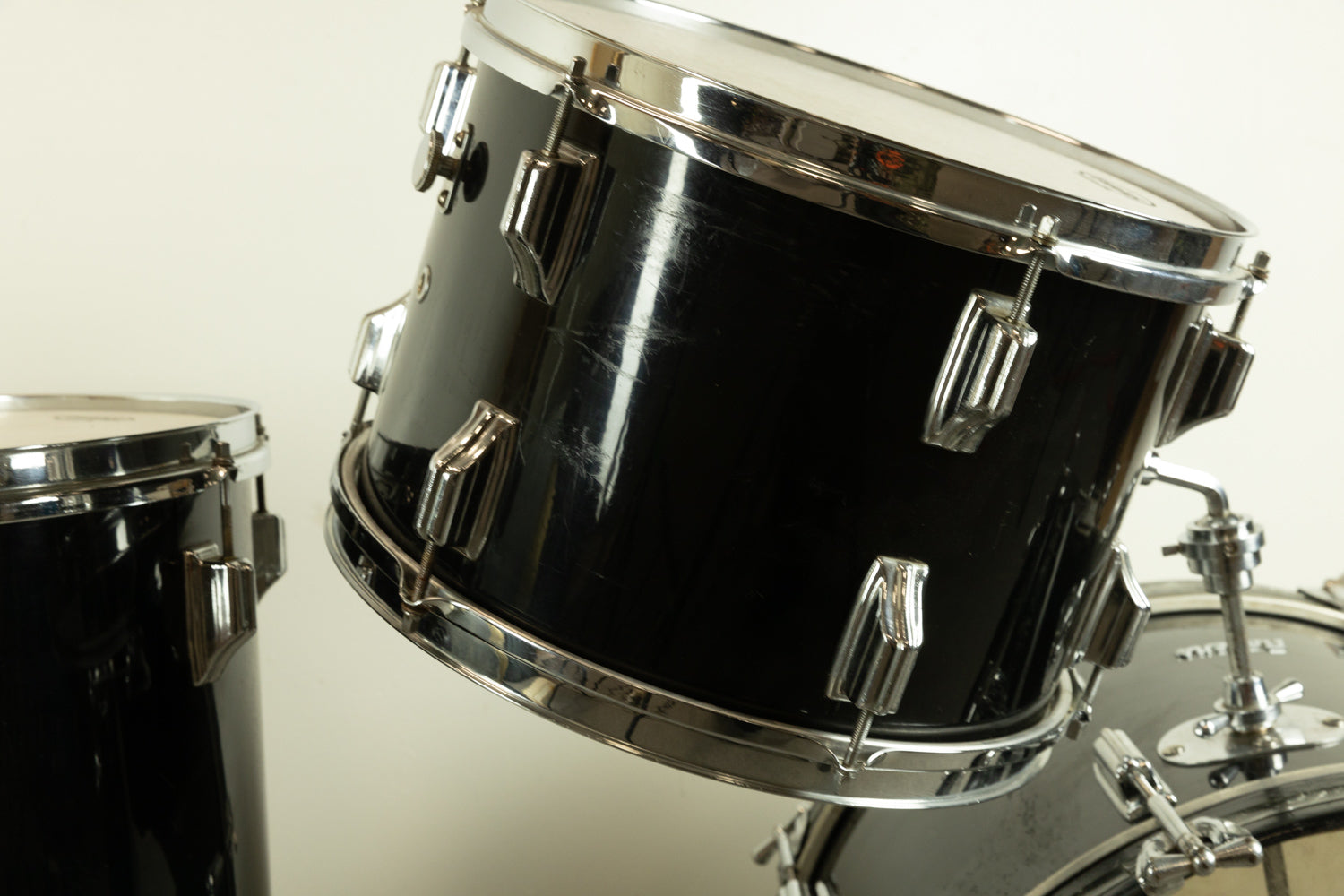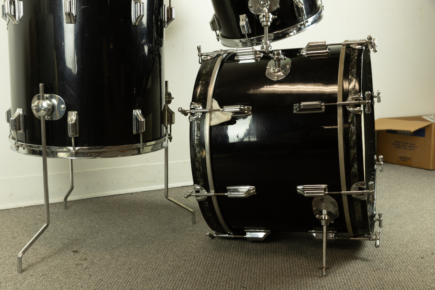 - Wrap is original on all three drums -- fairly hard to find earlier, Cleveland-era jet black pearl drums