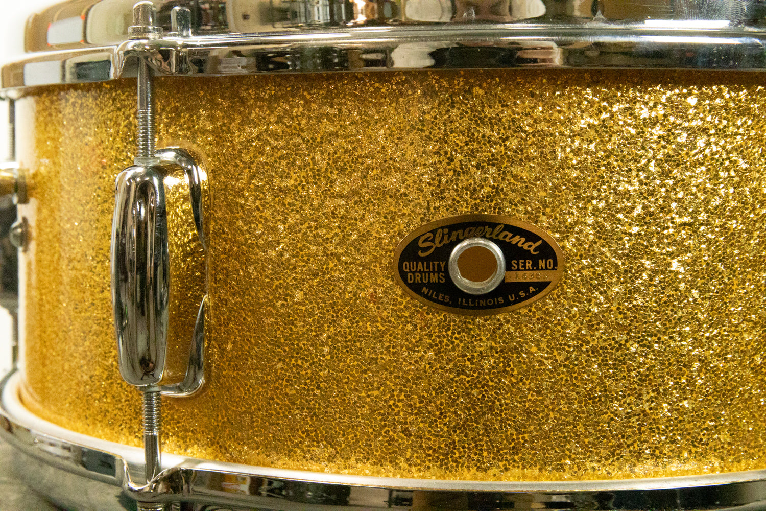 1963 Slingerland 5x14 Gold Sparkle Pearl Deluxe Student Snare Drum
