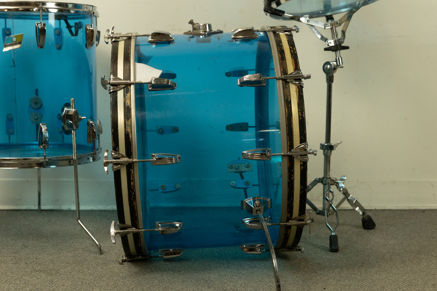 1970s Ludwig Blue Vistalite 14x22 9x13 and 16x16 Drum Set