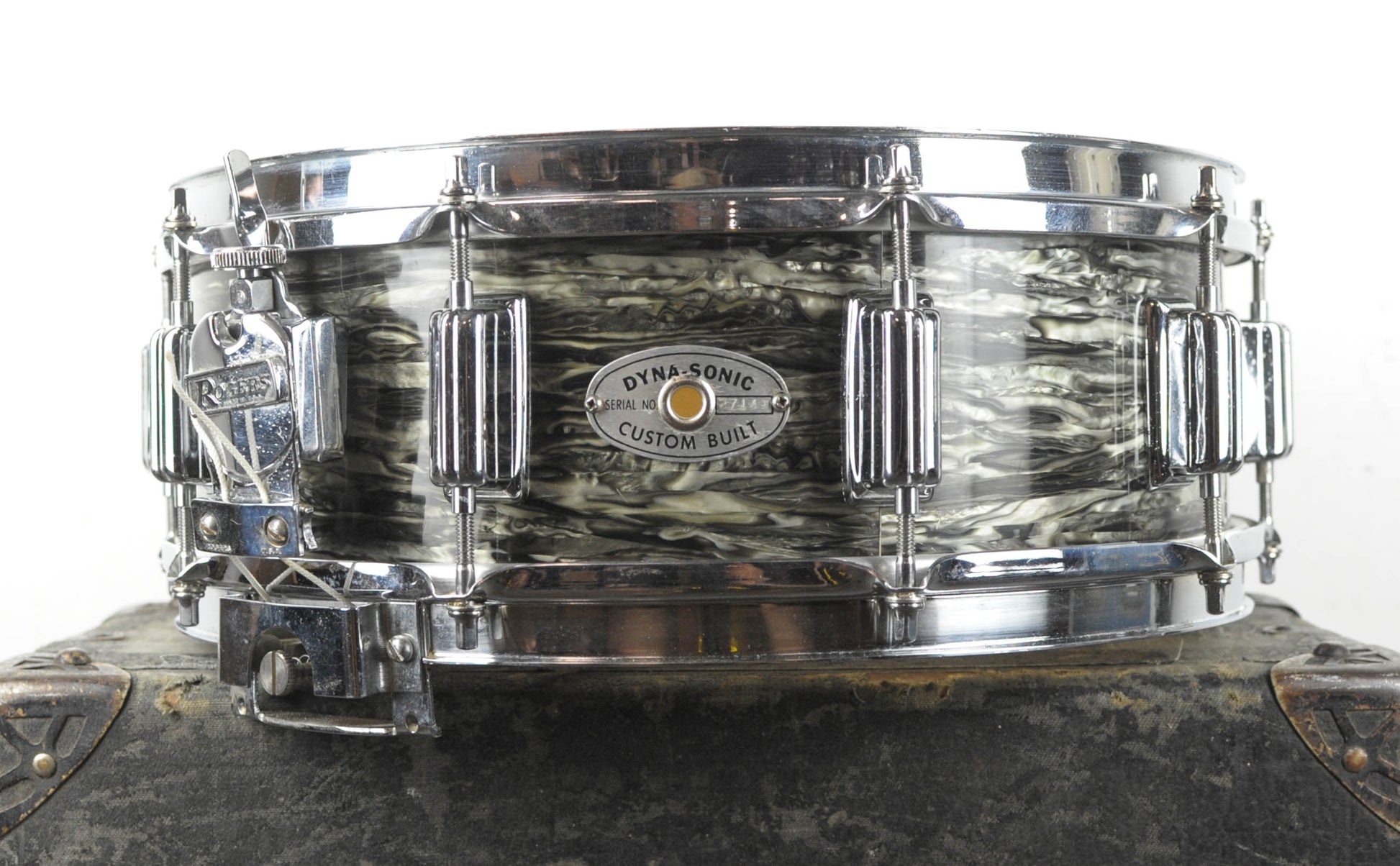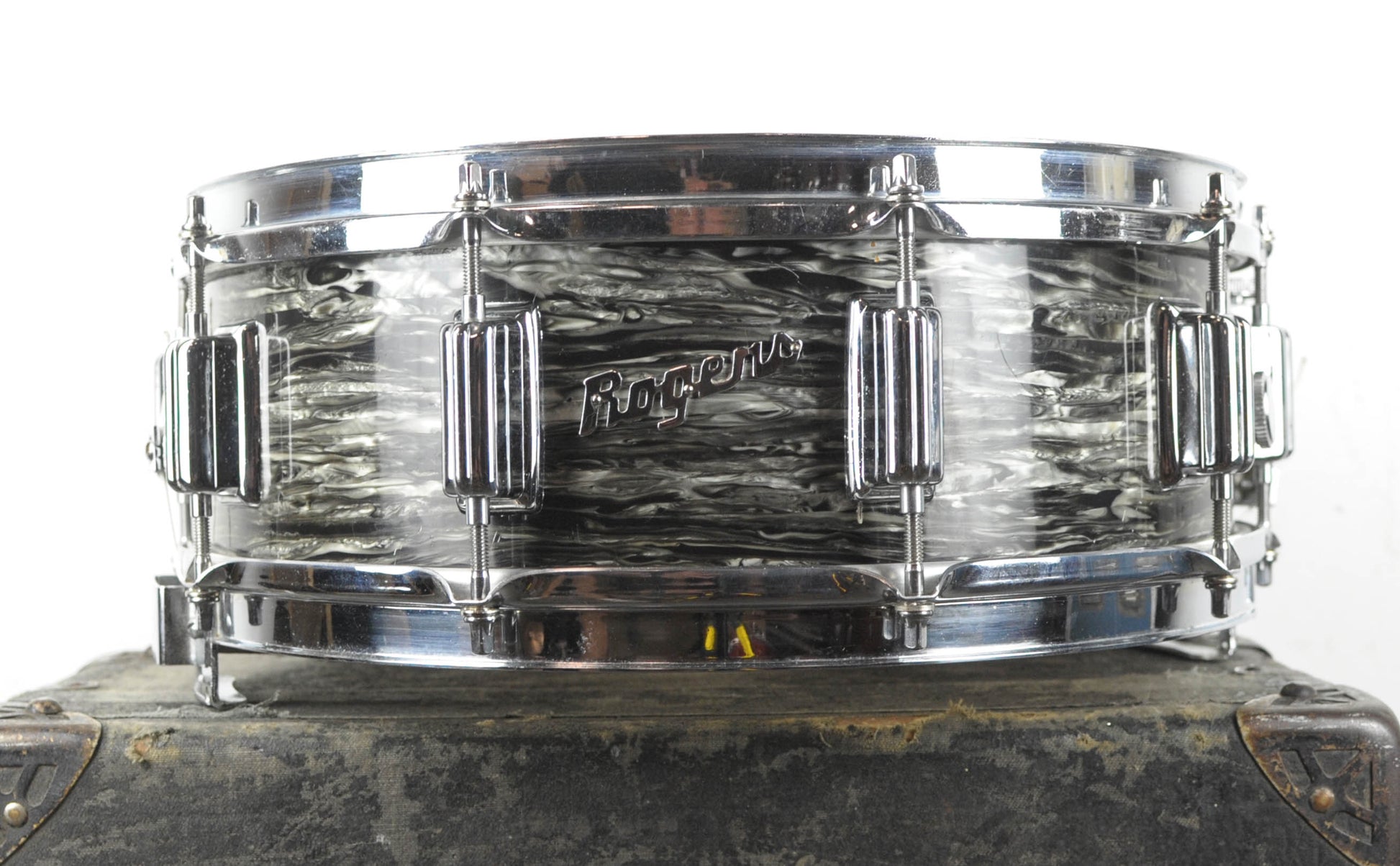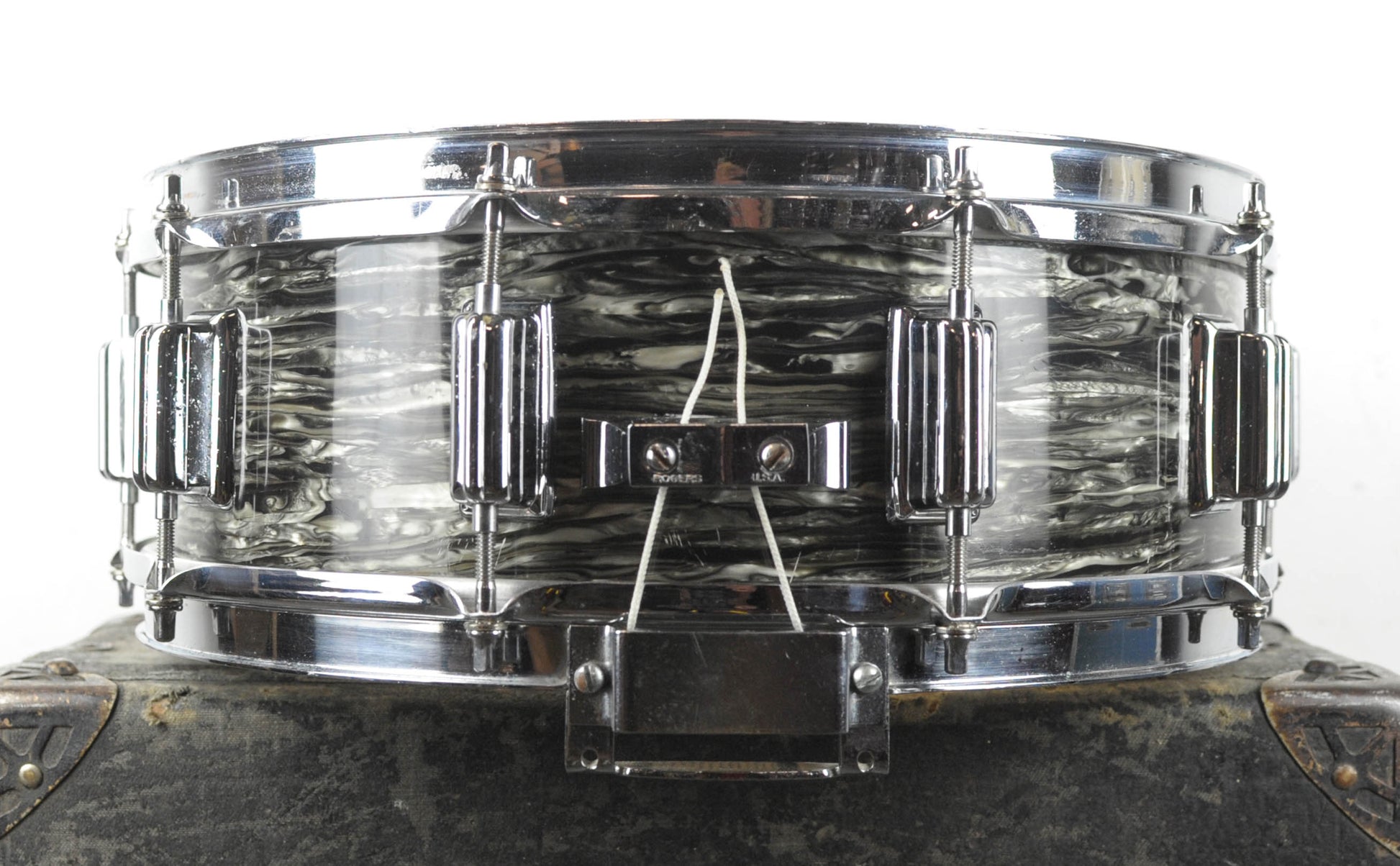 1970s Rogers 5x14 Black Strata Pearl Dynasonic Snare Drum