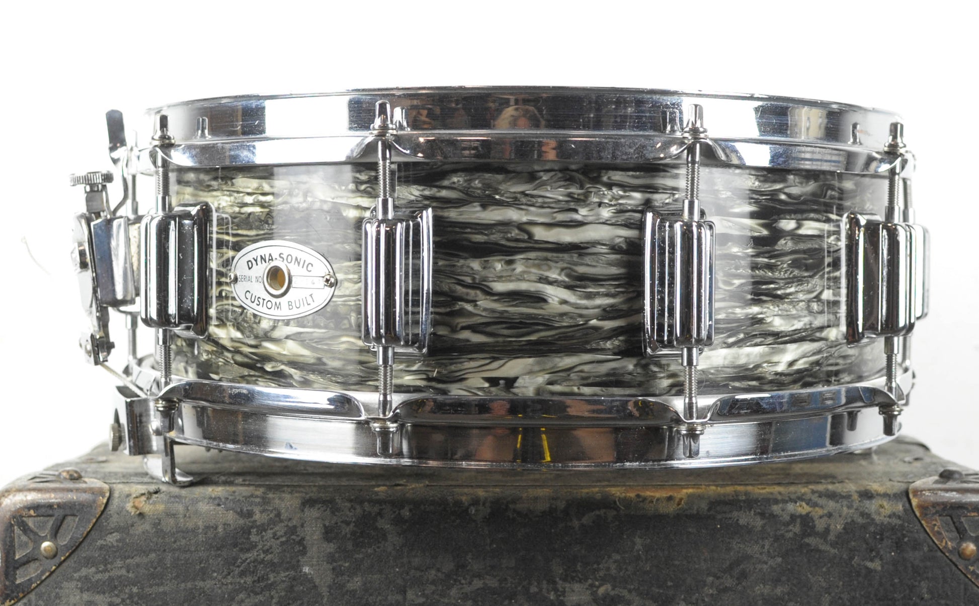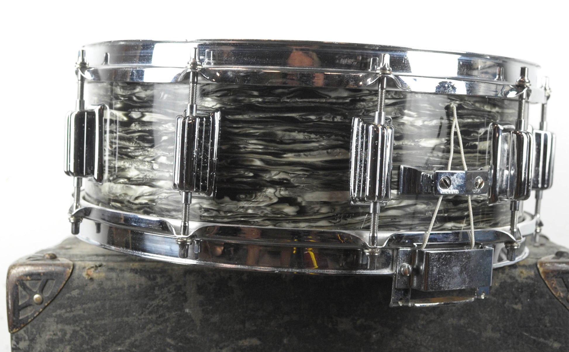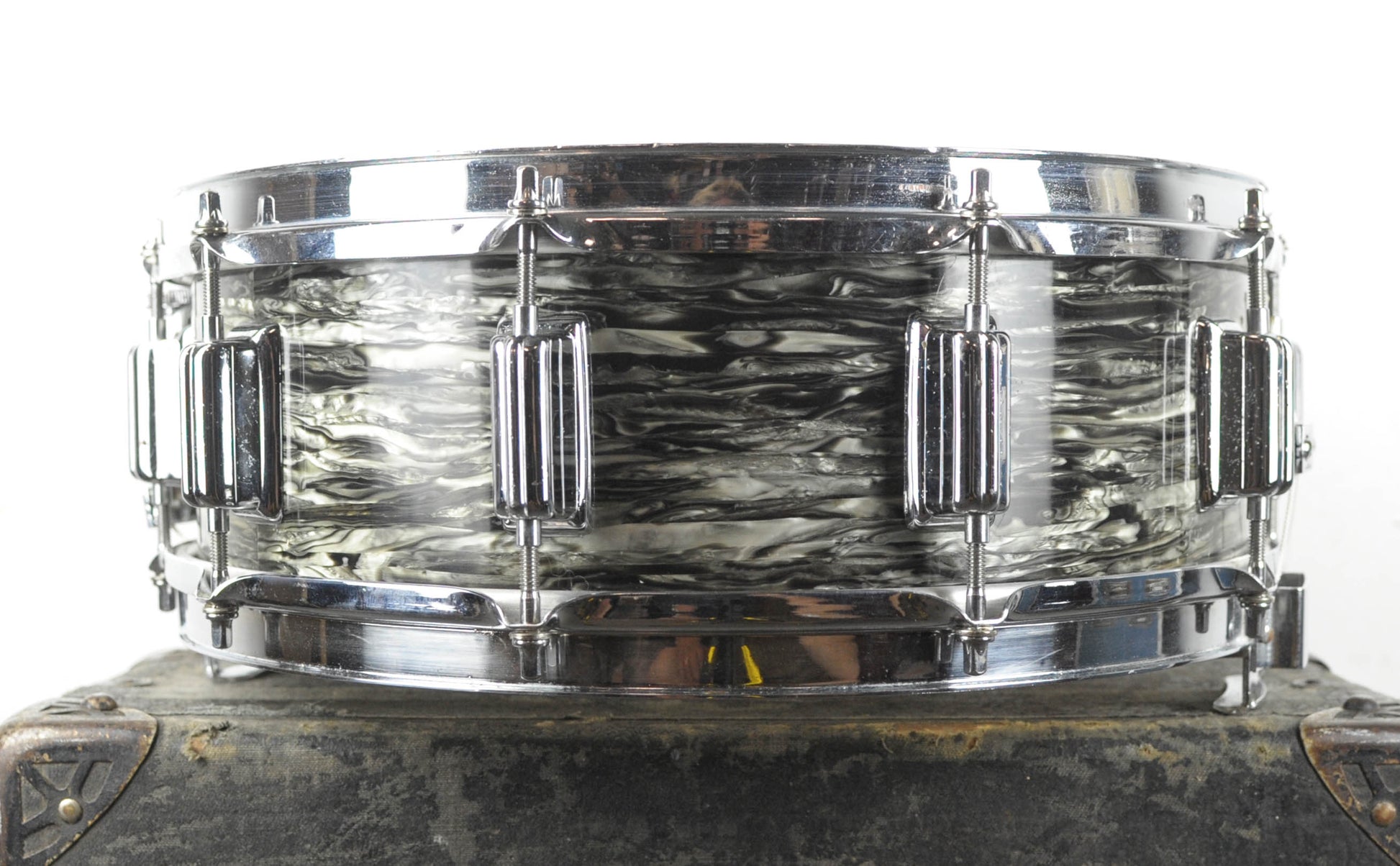 1970s Rogers 5x14 Black Strata Pearl Dynasonic Snare Drum