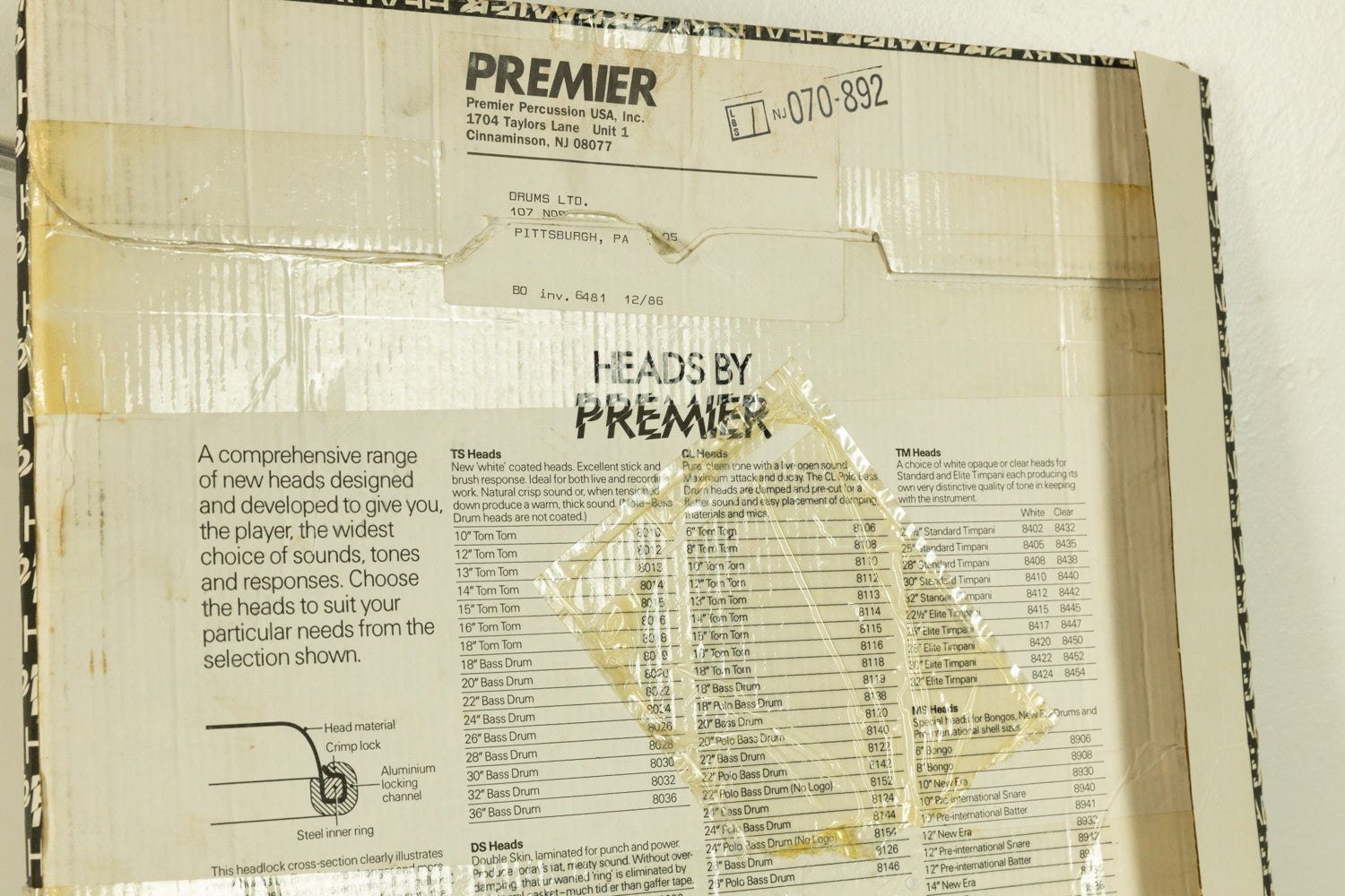 New Old Stock Vintage Premier 14" SD Extra Sensitive Snare Batter Head