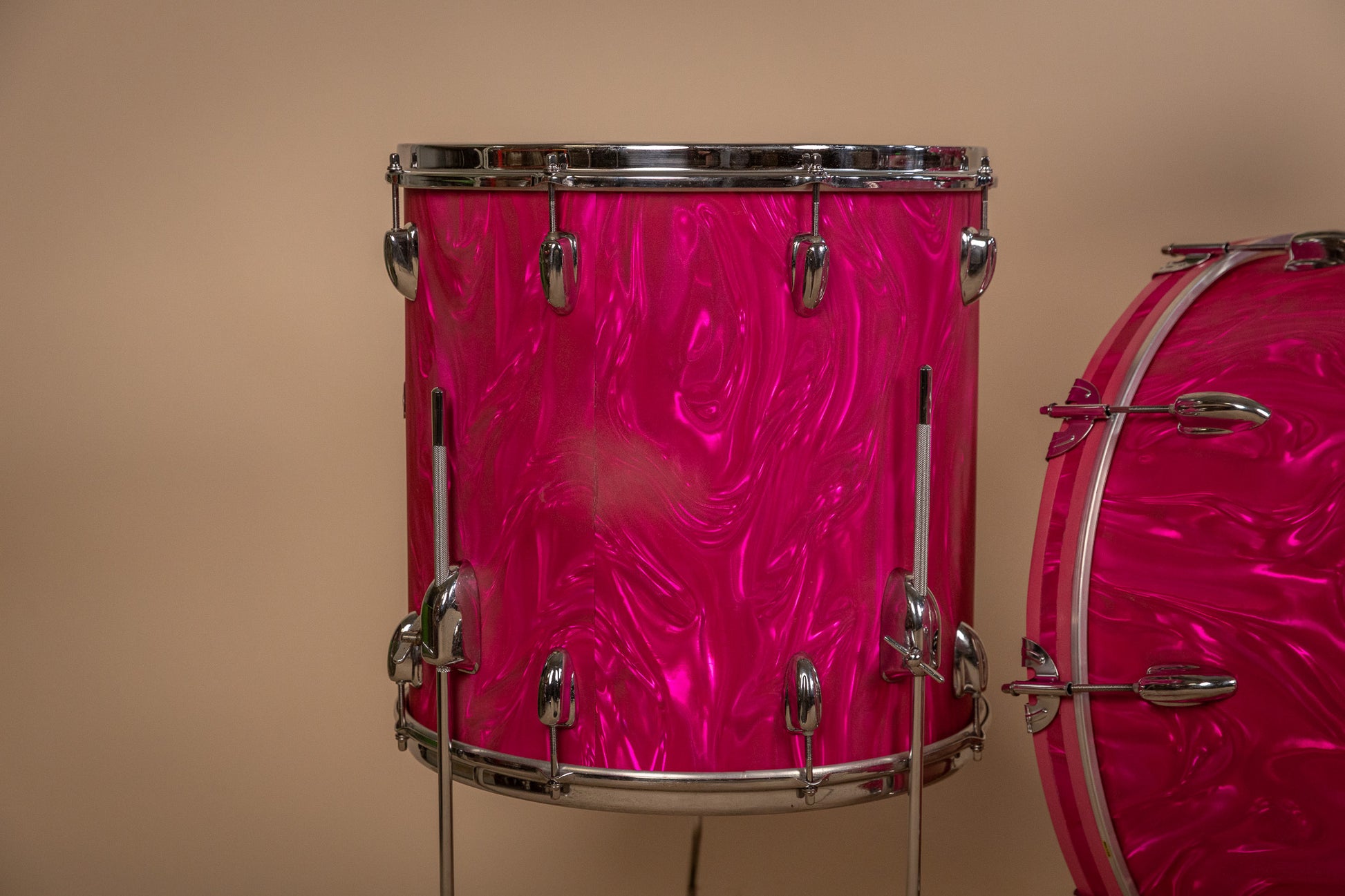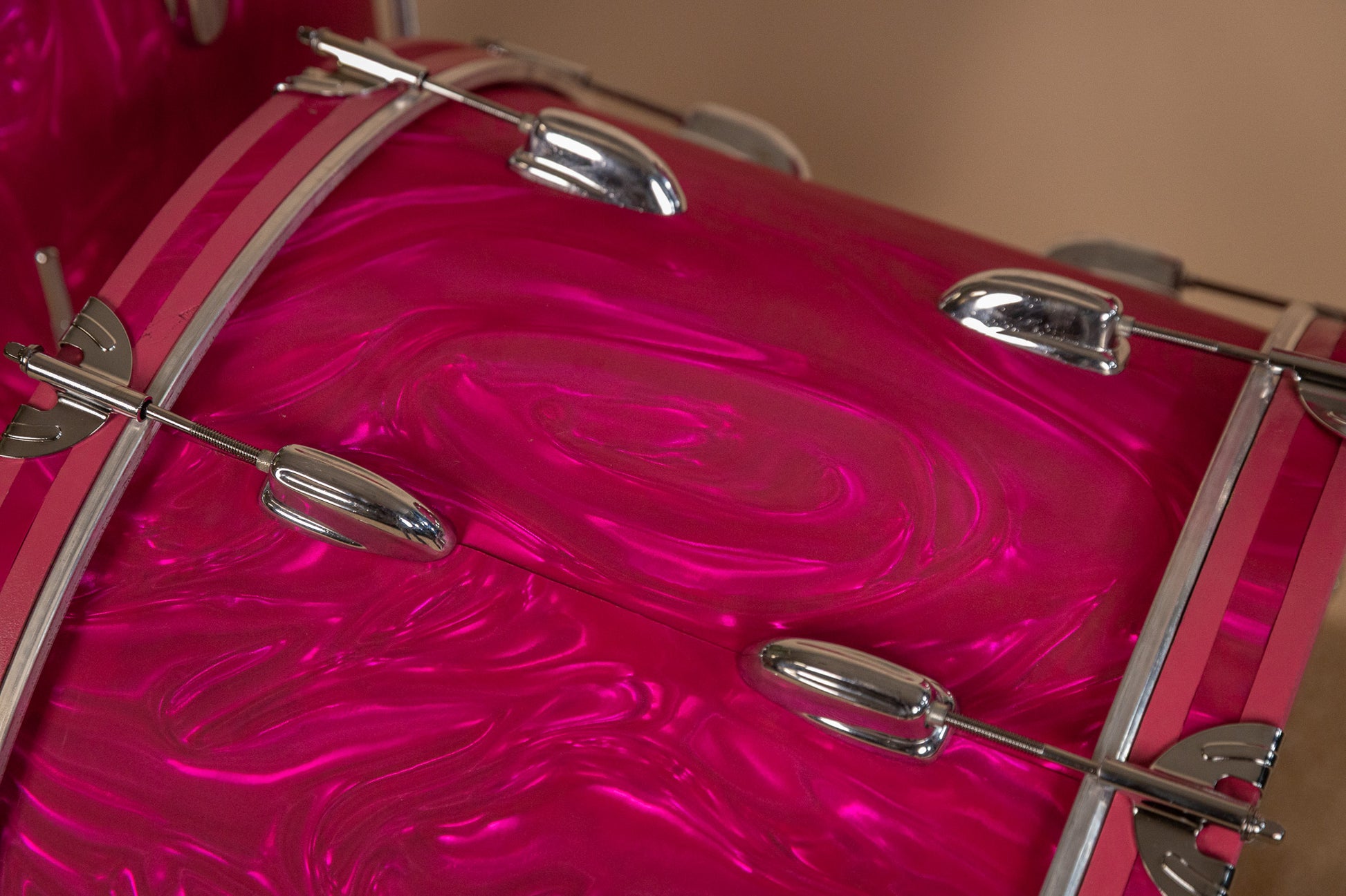 Vintage Slingerland Pink Satin Flame Drum Set 14x22 9x13 and 16x16