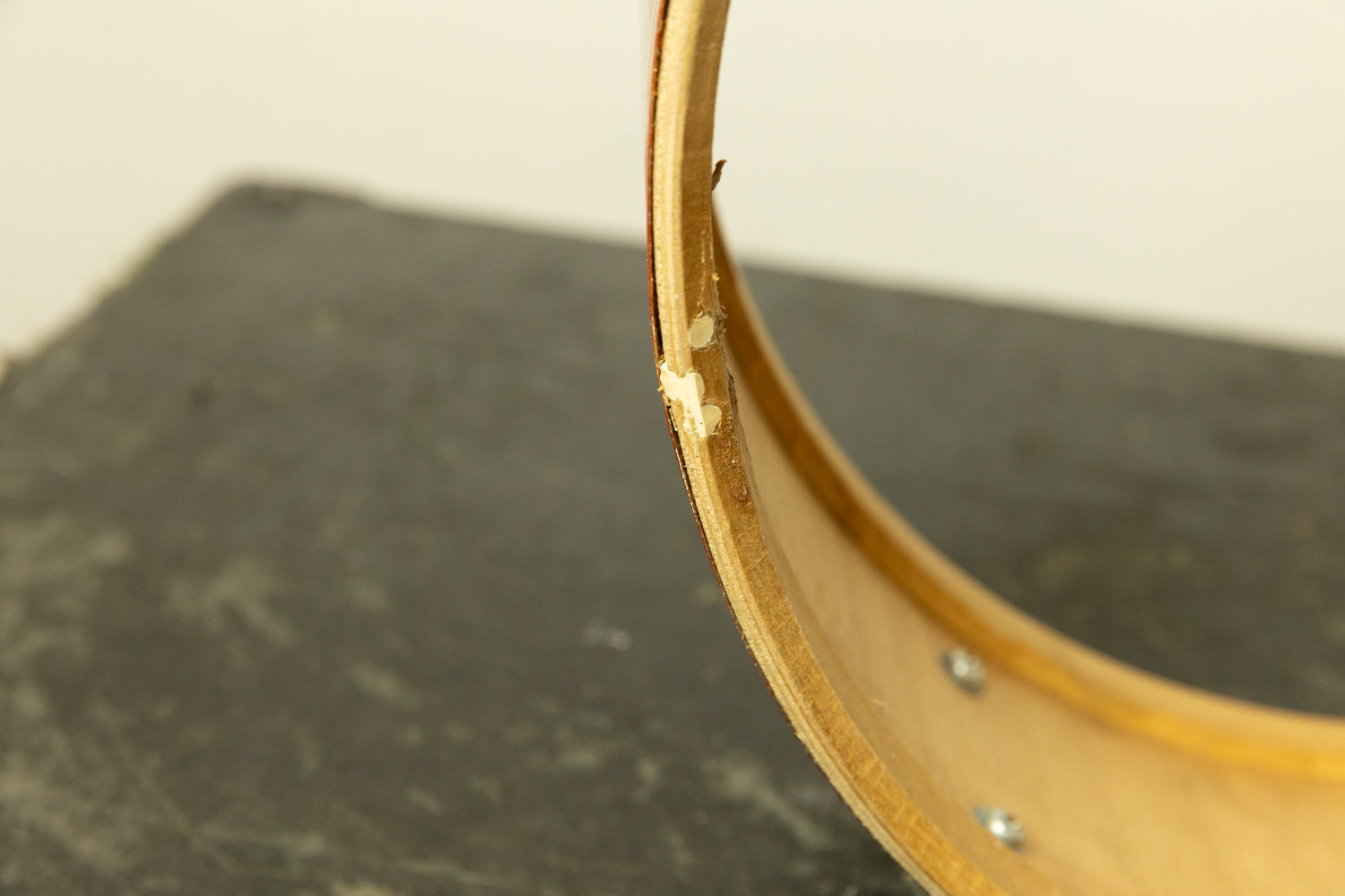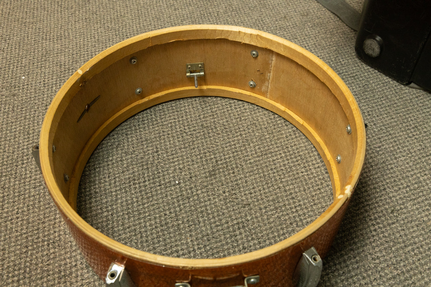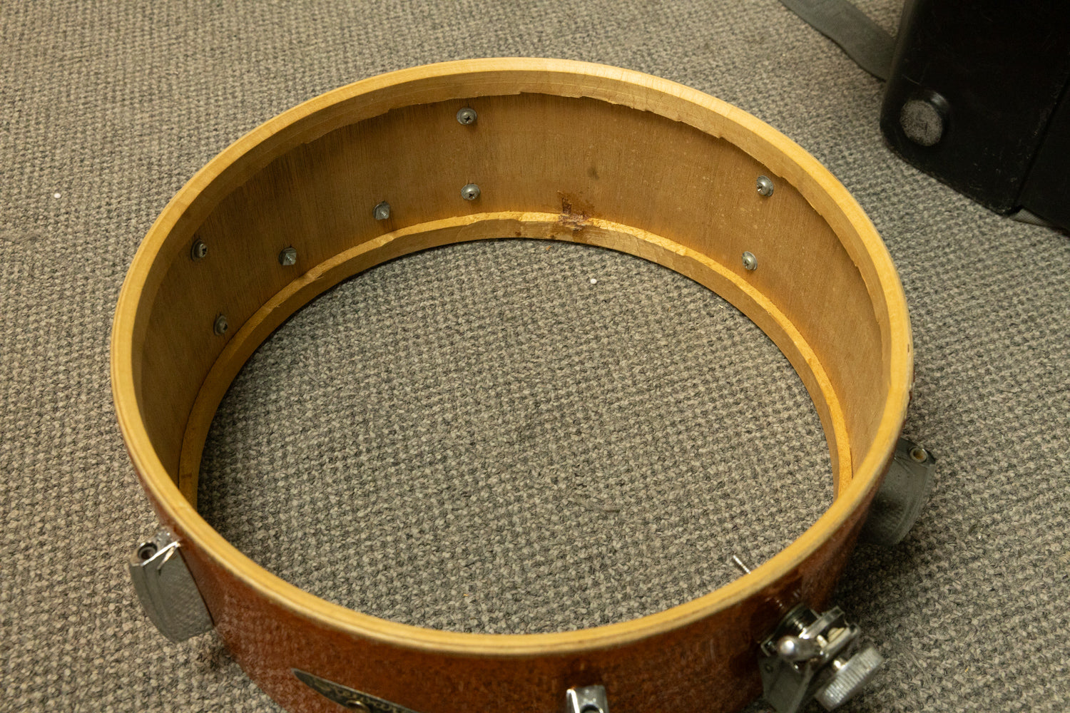 - We recut the edges and filled the holes that were in the reinforcement rings. New snare beds were also cut