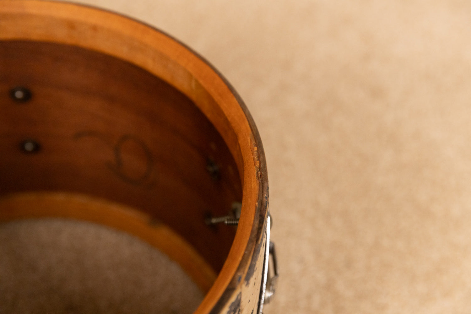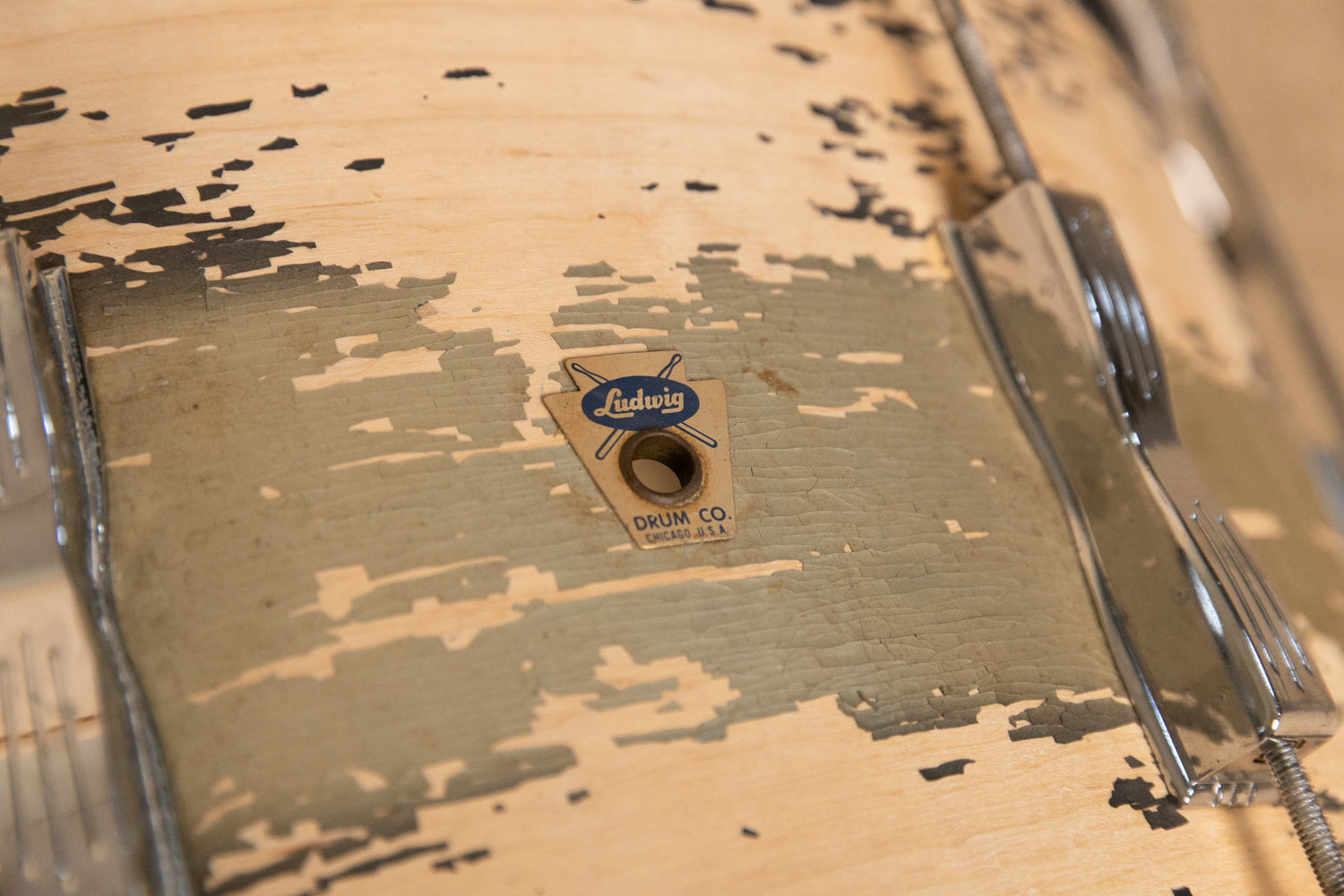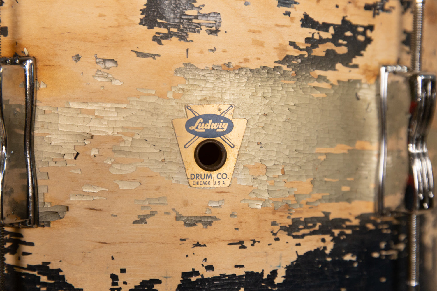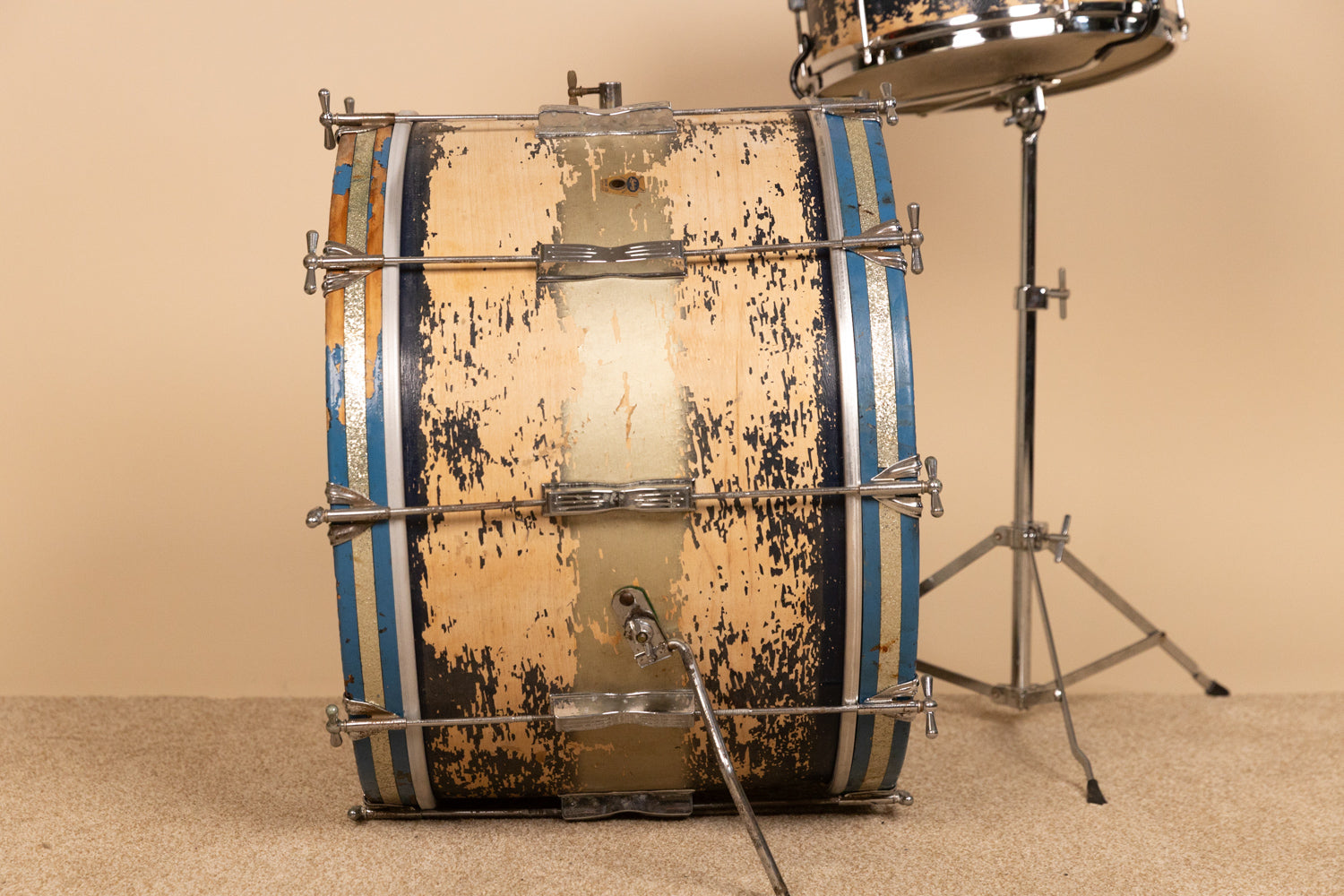 - Both drums have actively flaking finishes -- would be a good refinish project for someone