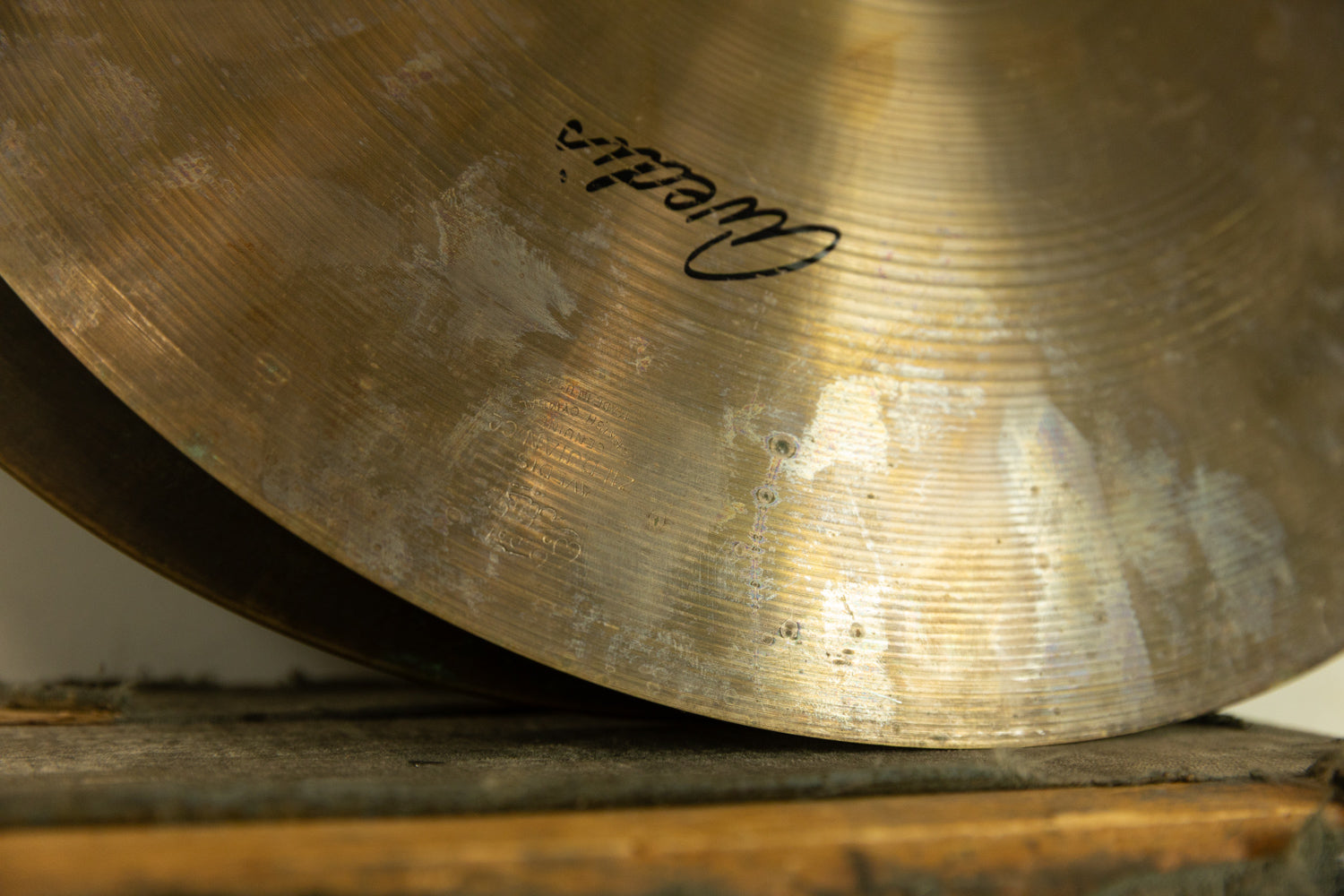 - Plenty of patina developed on the top cymbal